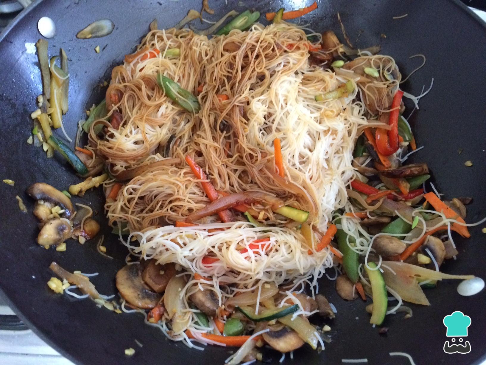 Como fazer Macarrão de arroz com legumes e shoyu: