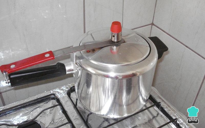 Mexa, feche e deixe a panela cozinhar até pegar pressão, que é quando começa fazendo barulho. Nesse momento baixe o fogo e deixe cozinhar por mais 3 minutos, depois desligue.