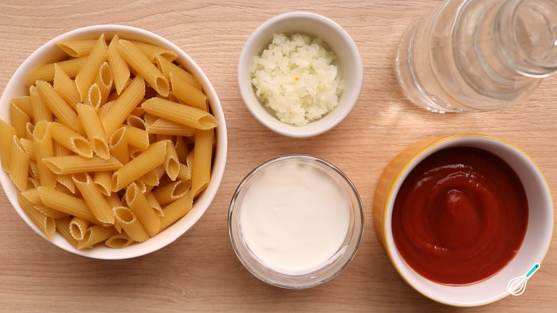 Comece separando os ingredientes para o seu macarrão de panela de pressão simples.