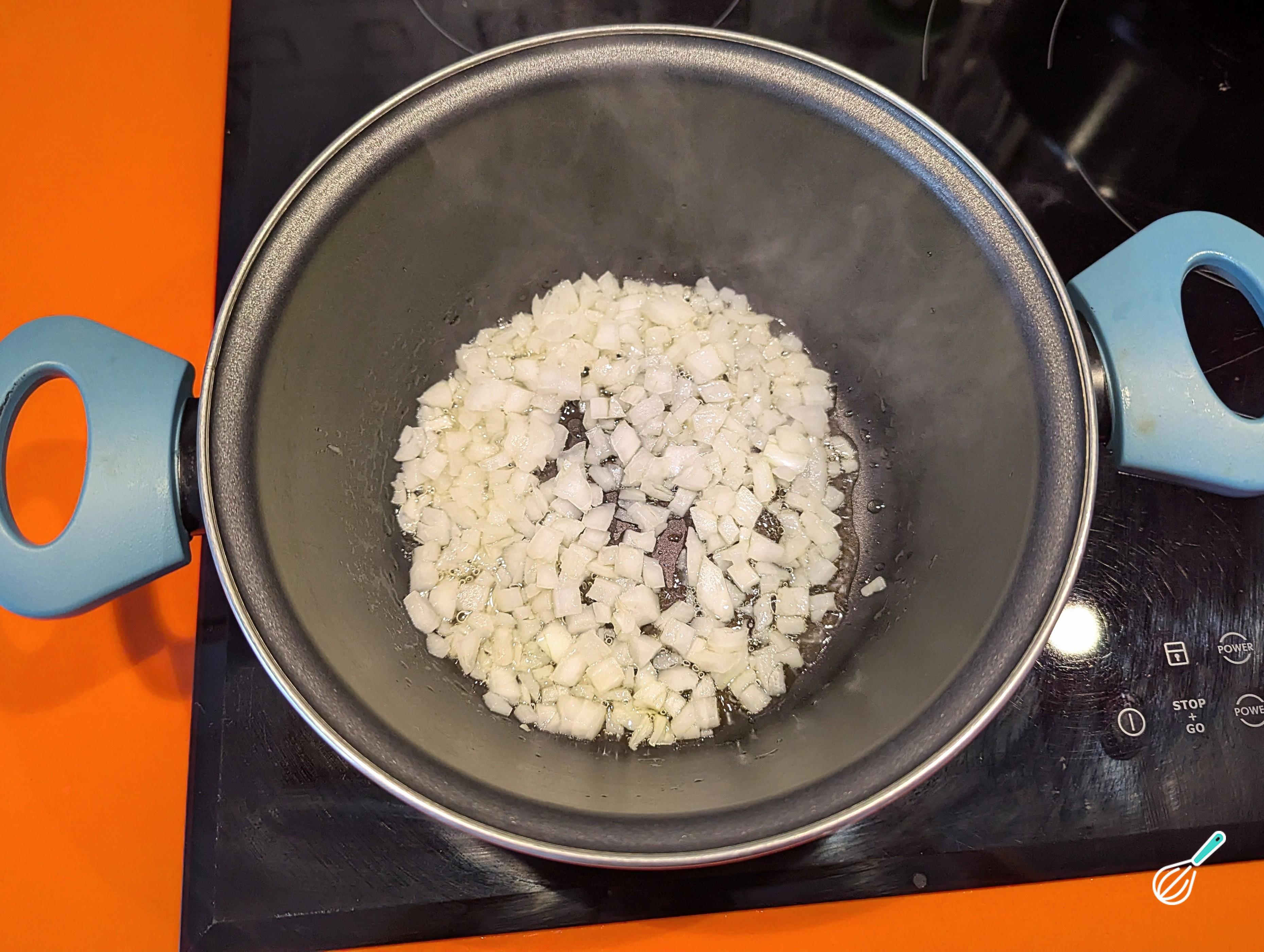 Em outra panela, aqueça um pouco de azeite ou óleo em fogo médio. Adicione a cebola picada e refogue até ela ficar transparente ou levemente dourada. Isso vai liberar um aroma delicioso que é a base do nosso molho.