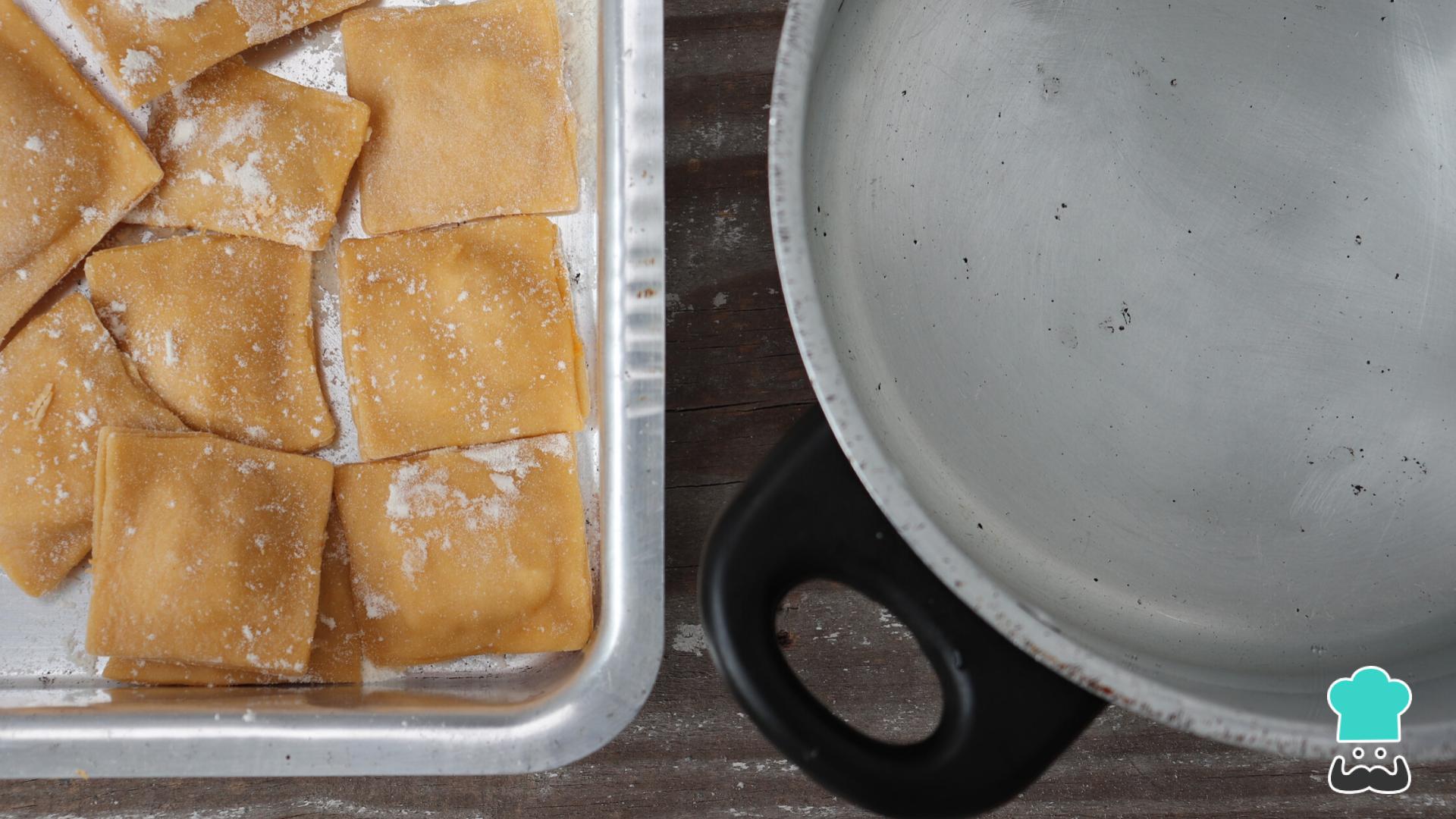 Leve o ravióli para cozinhar em uma panela com água fervendo por 10 minutos ou até eles começarem a flutuar.
