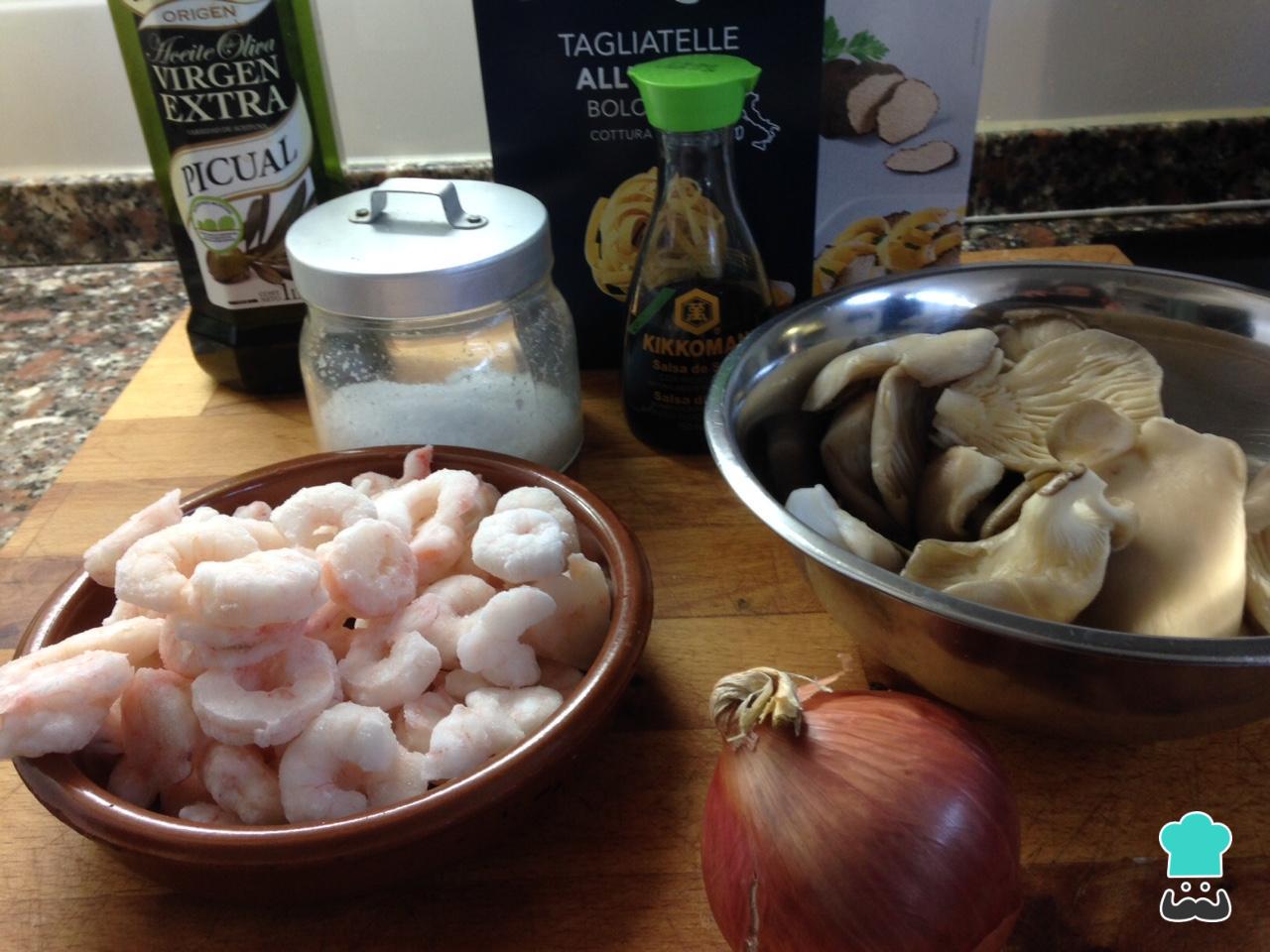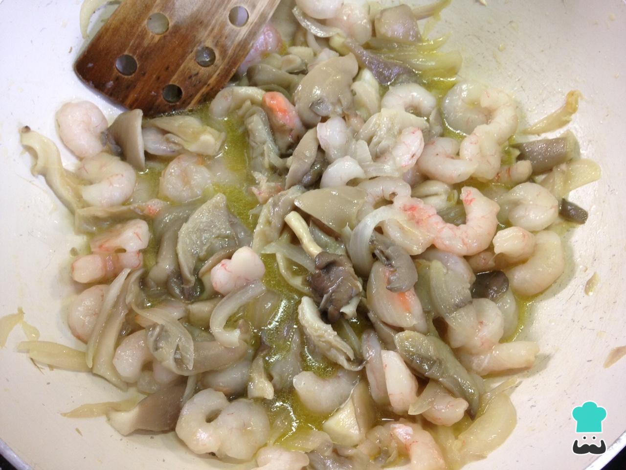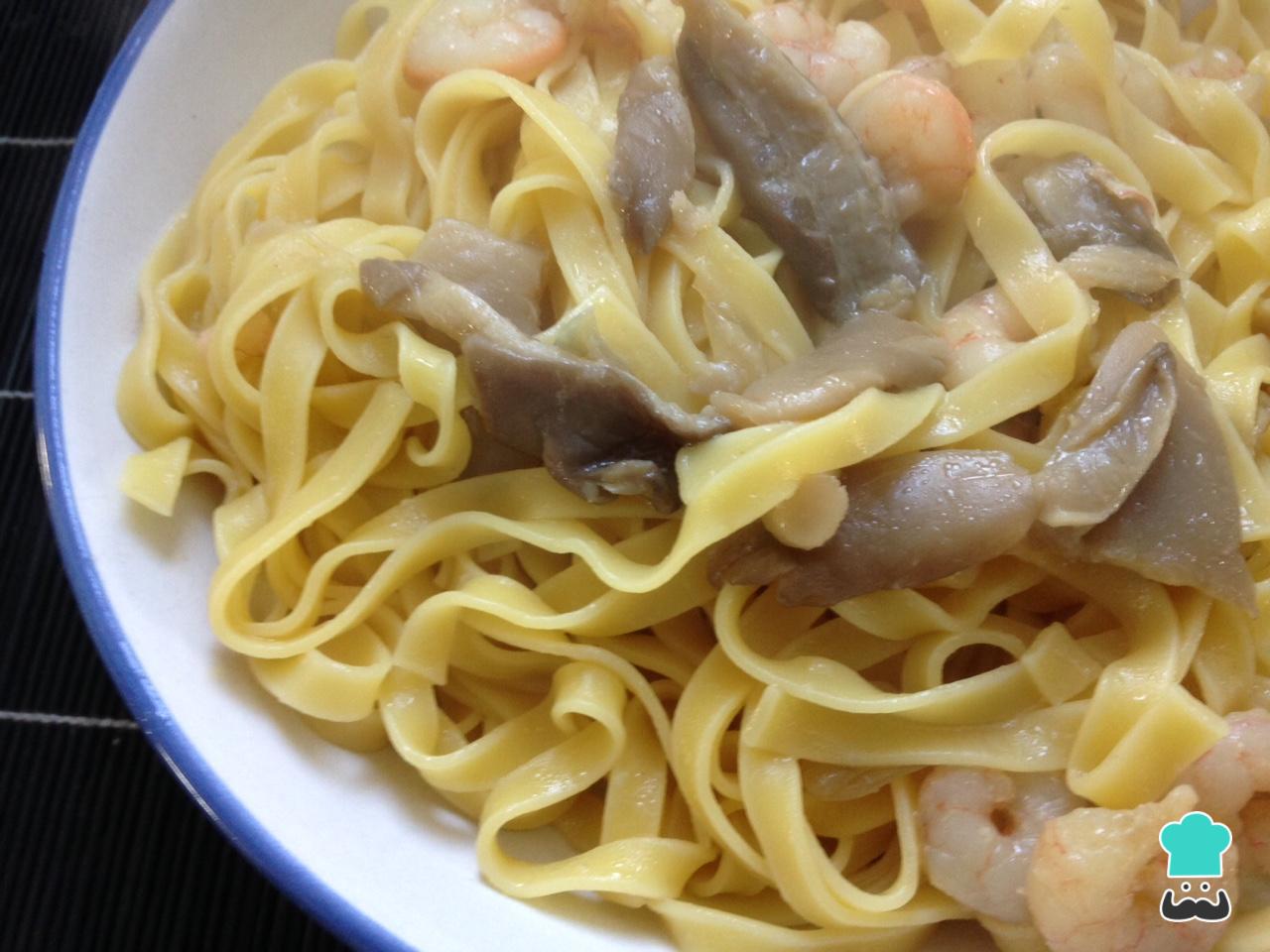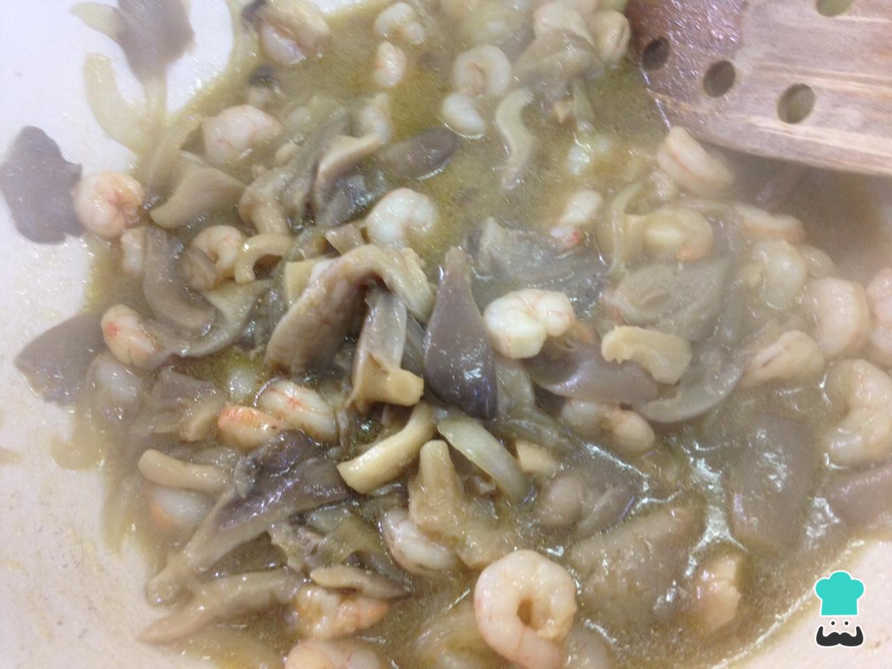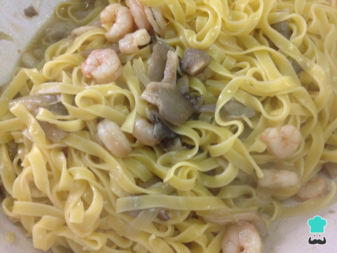 Como fazer Macarrão talharim com cogumelos e camarão: