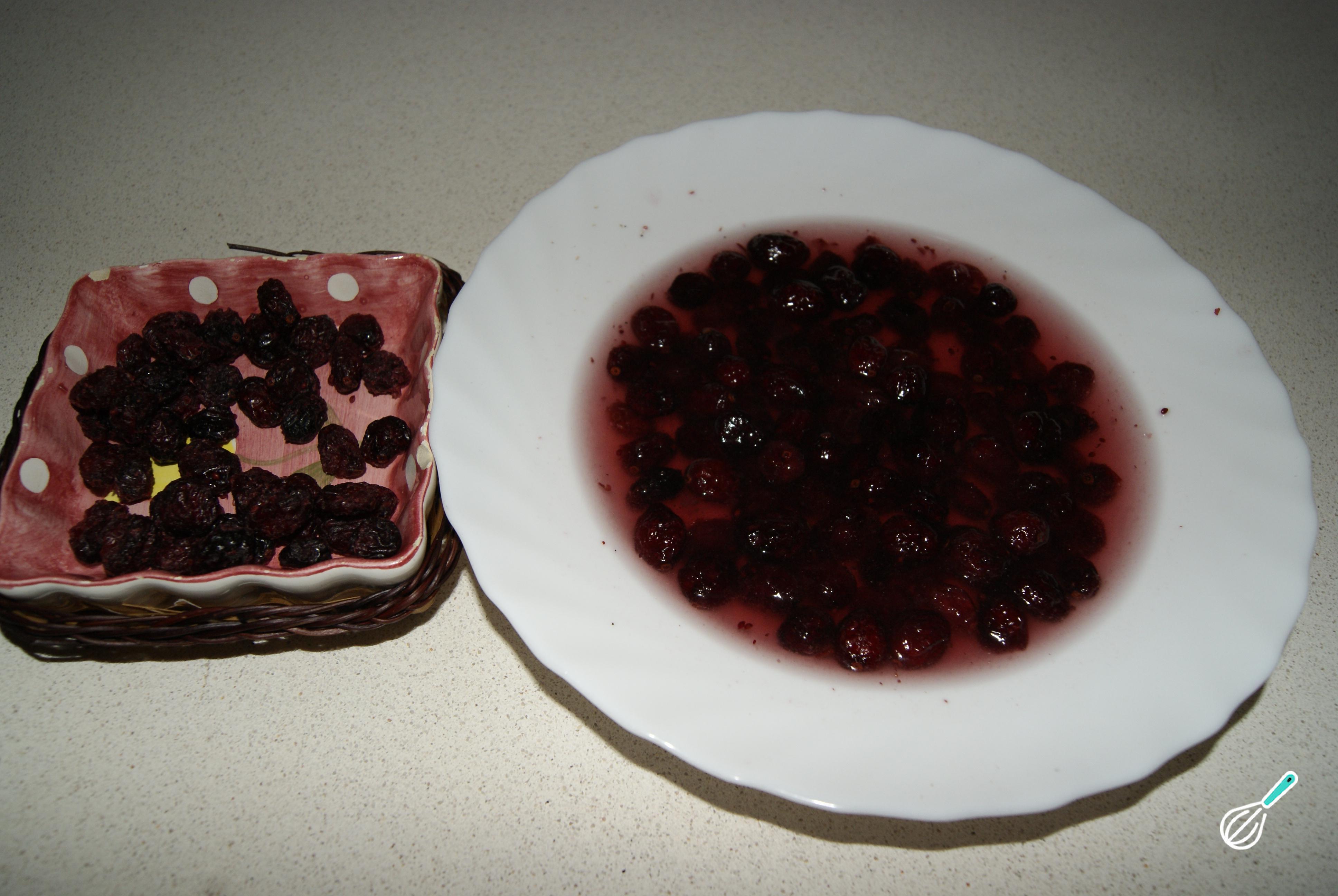 Para preparar esta receita de magret de pato com molho frutado comece por hidratar metade dos arandos com água (os restantes usaremos para decorar o prato).