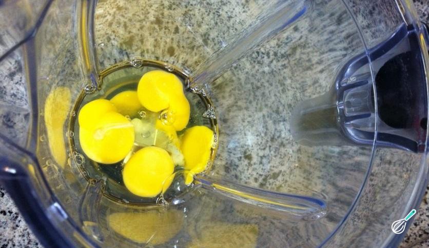 Fazer maionese em casa é bem simples, o primeiro passo é bater os ovos.