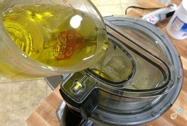 Com o liquidificador na potência máxima, acrescente o óleo em fio, pouco a pouco.