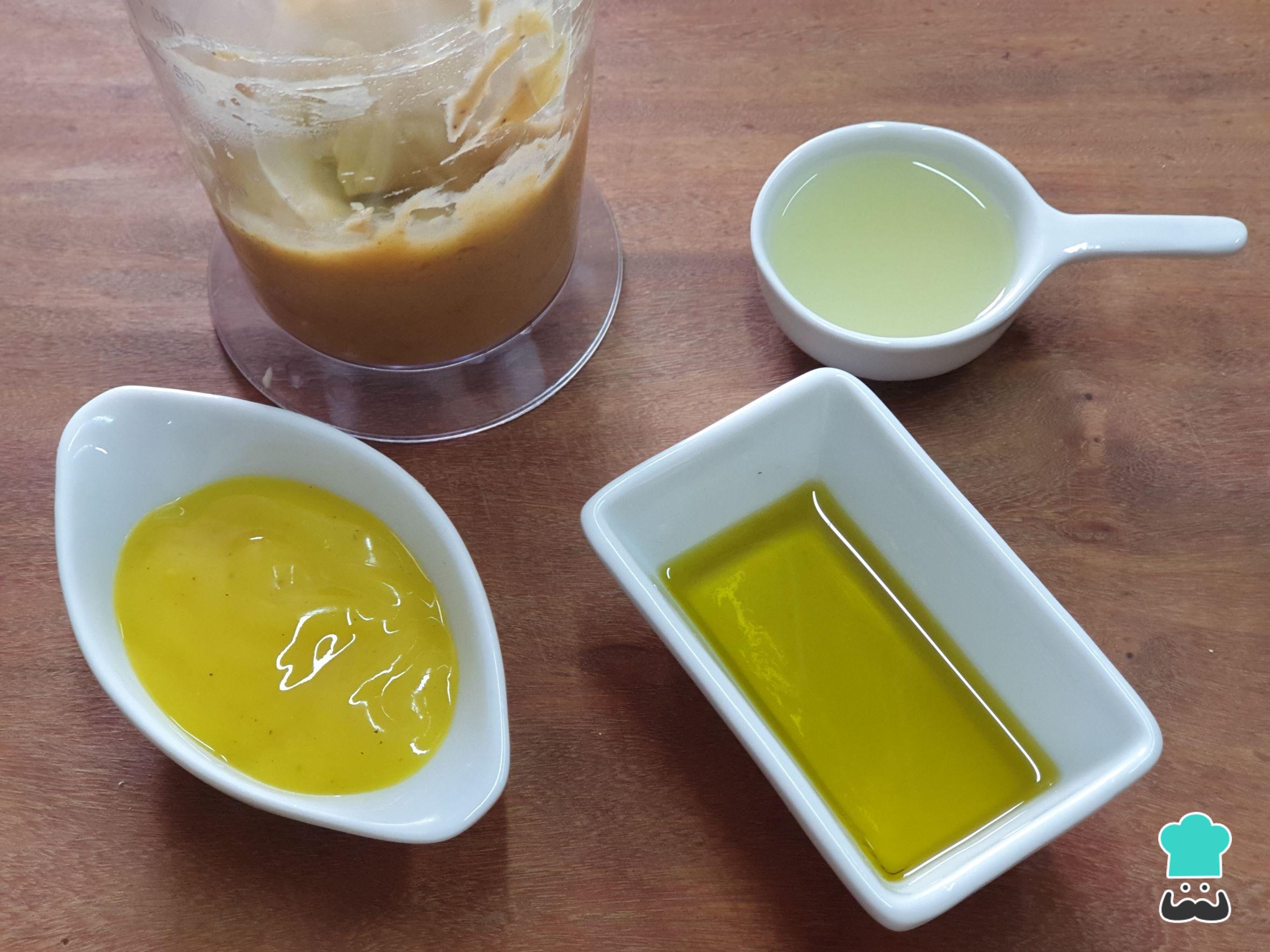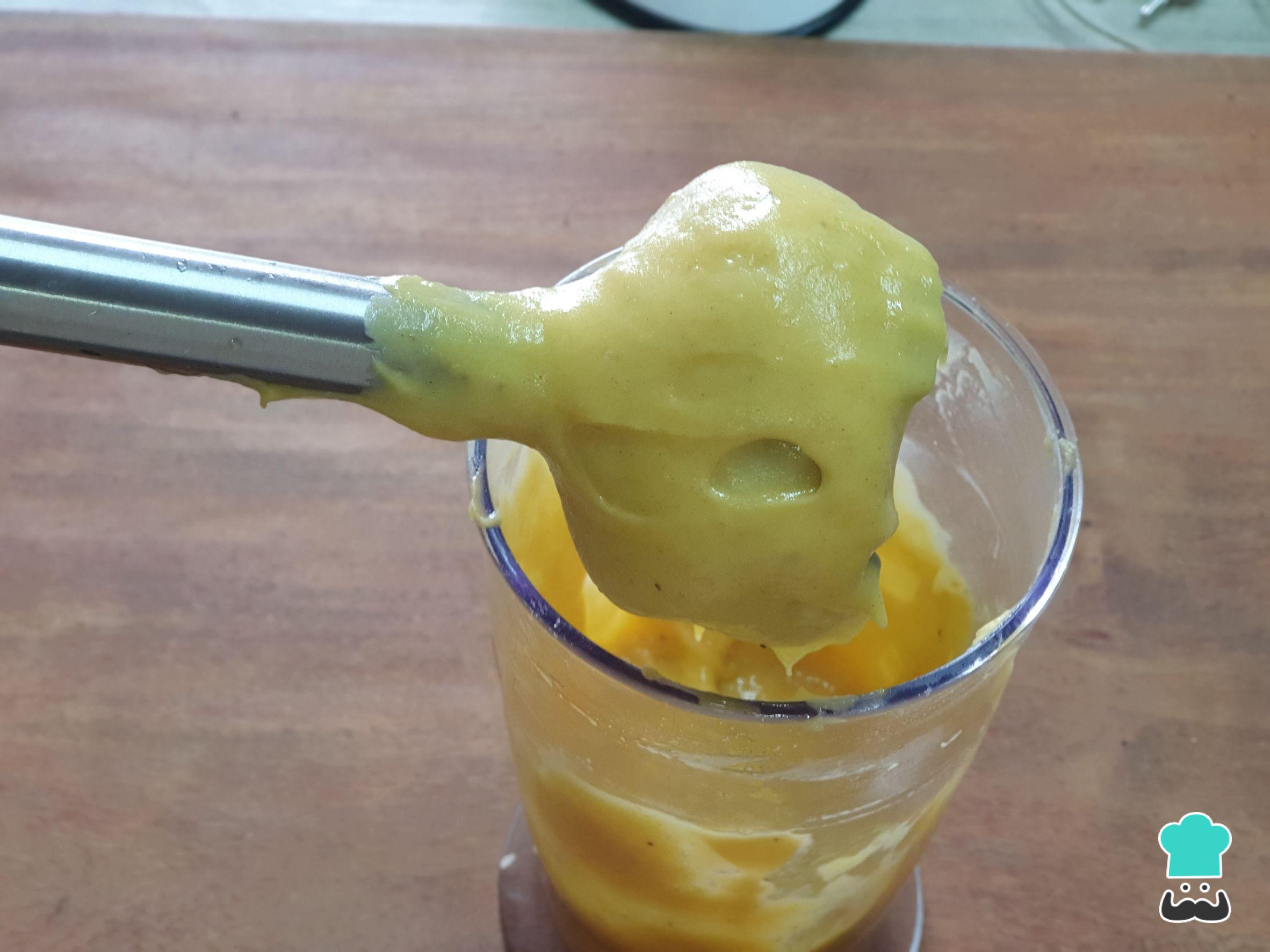 Esta receita de maionese de biomassa de banana verde é muito simples, pois basta bater todos os ingredientes até que a maionese fique bem cremosa. Acerte o sal e a maionese está pronta!