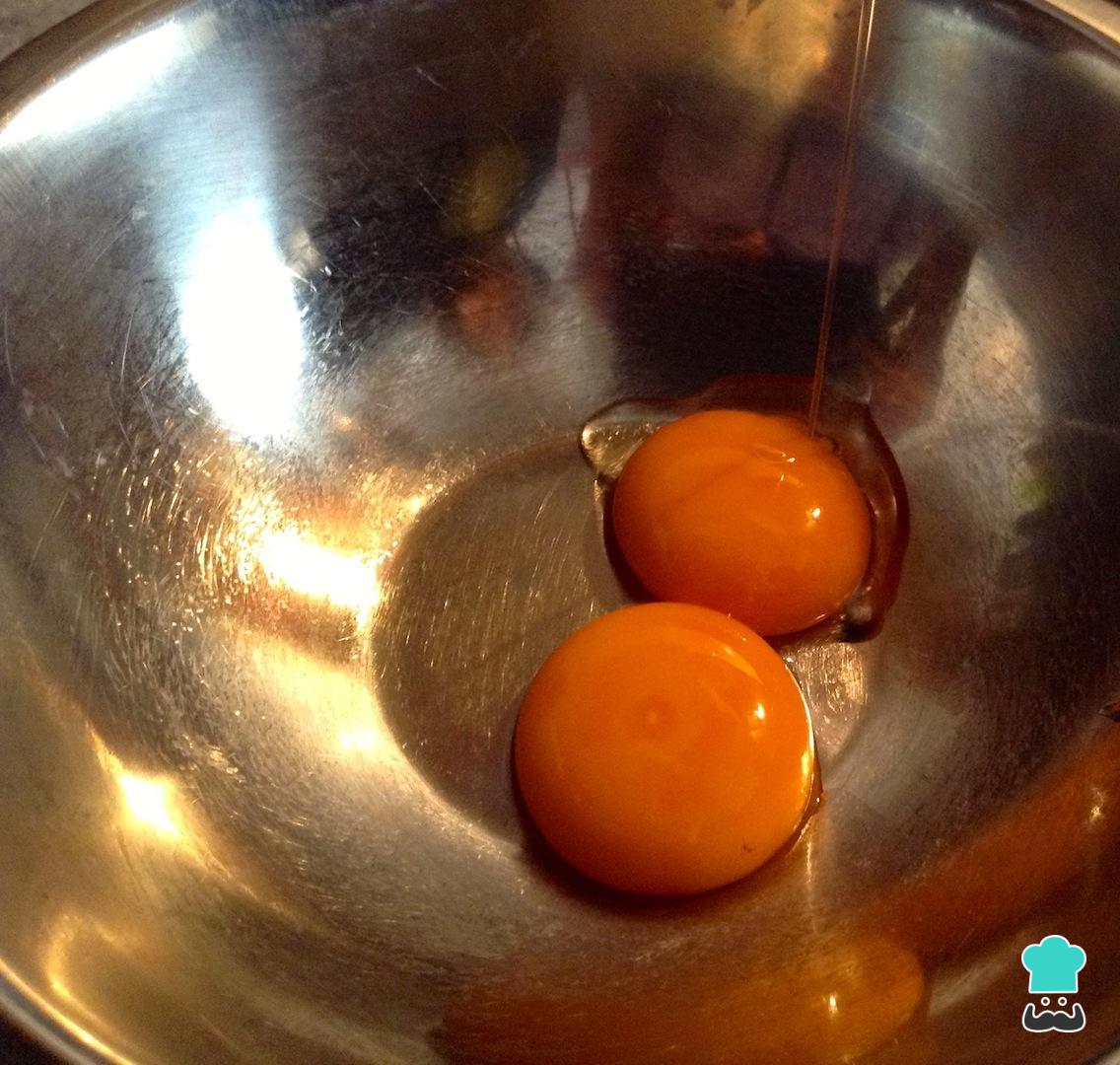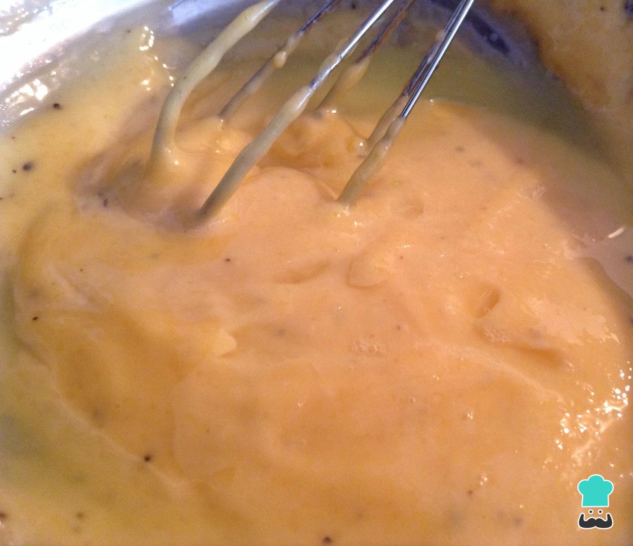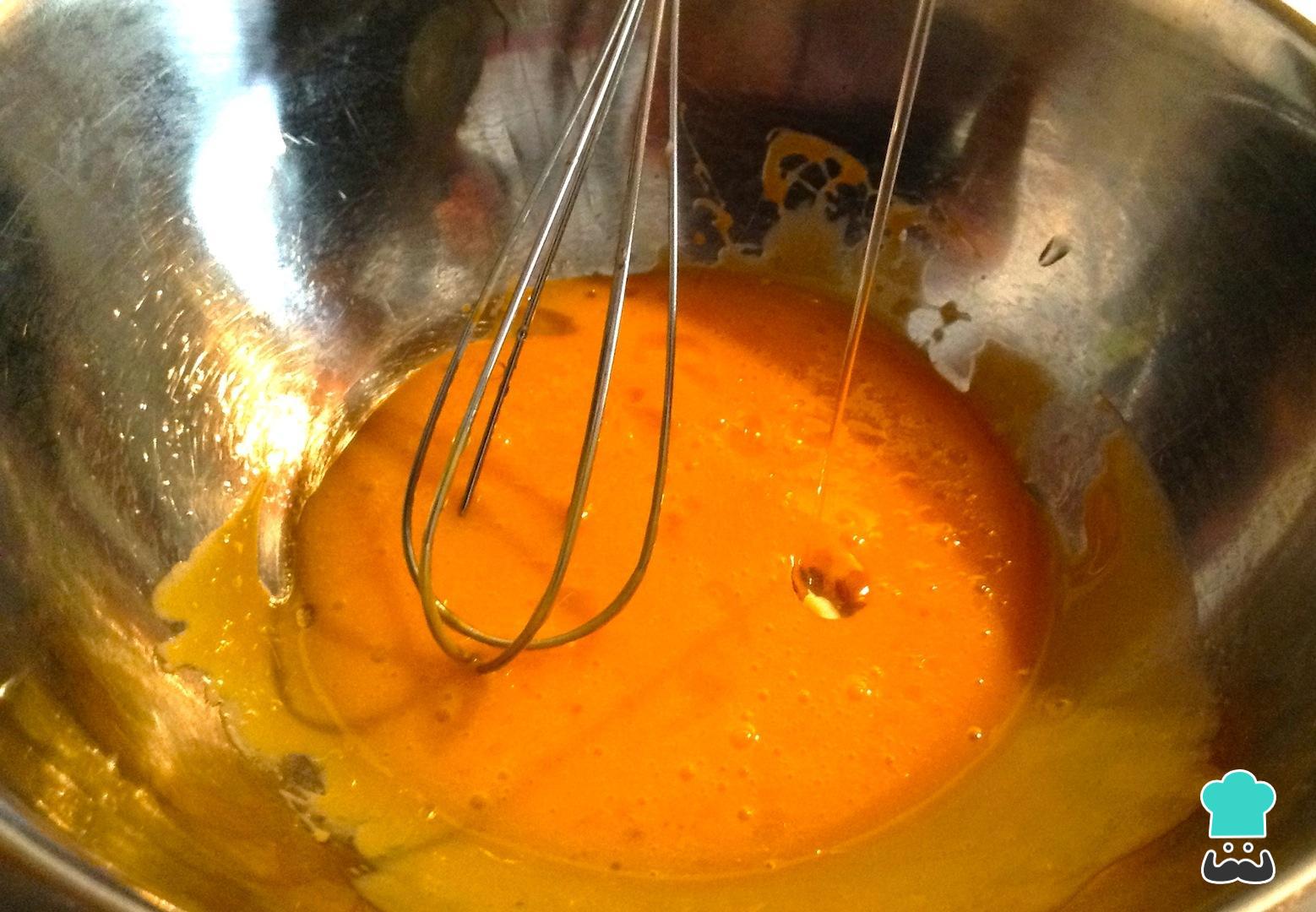 Vá batendo os ovos com uma batedeira elétrica ou de mão, enquanto adiciona o óleo em um fio muito fino, como na fotografia.