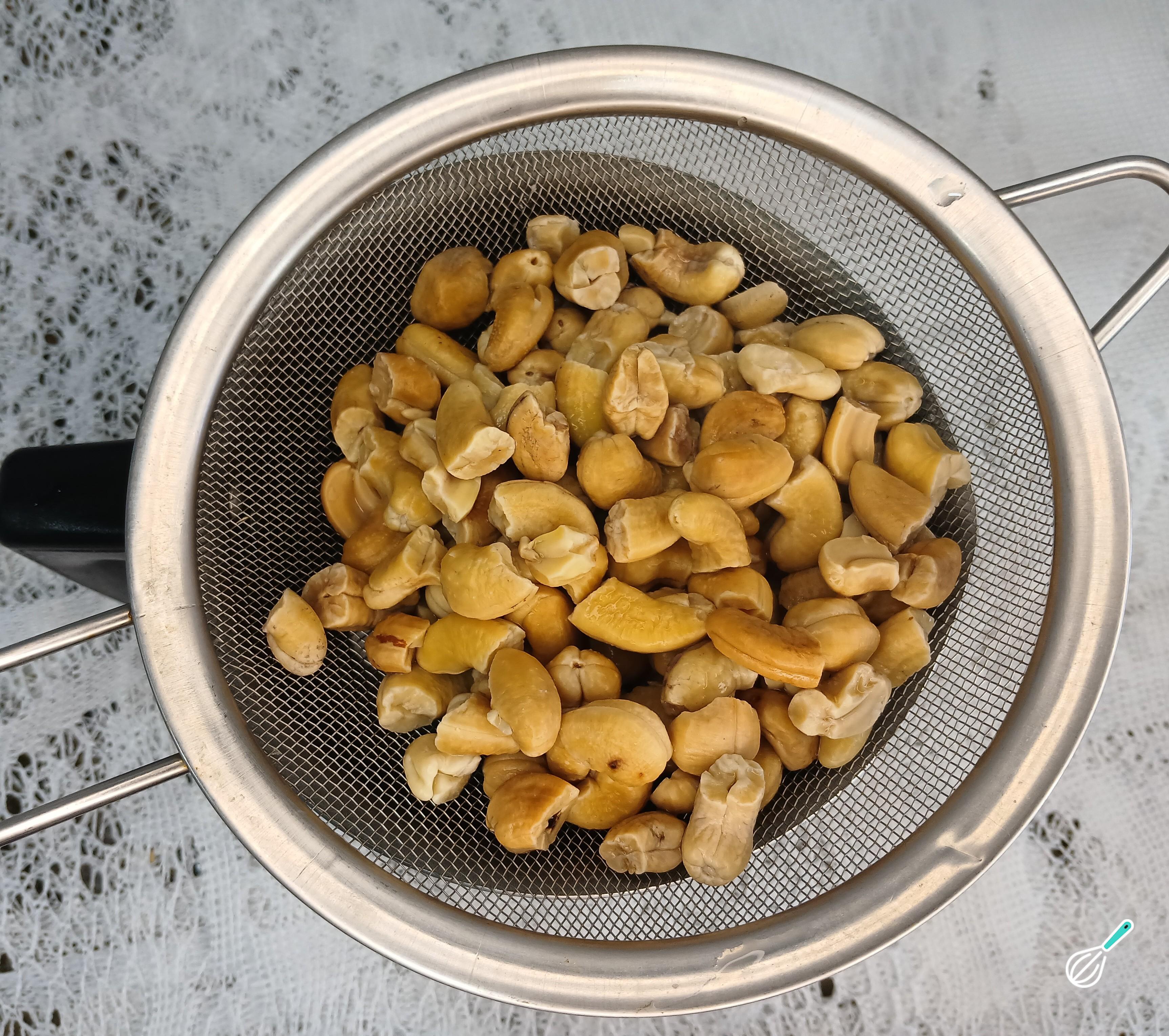 Dica: Esse processo poderá ser feito colocando as castanhas de caju de molho por no mínimo 4 horas, para que assim fiquem macias.