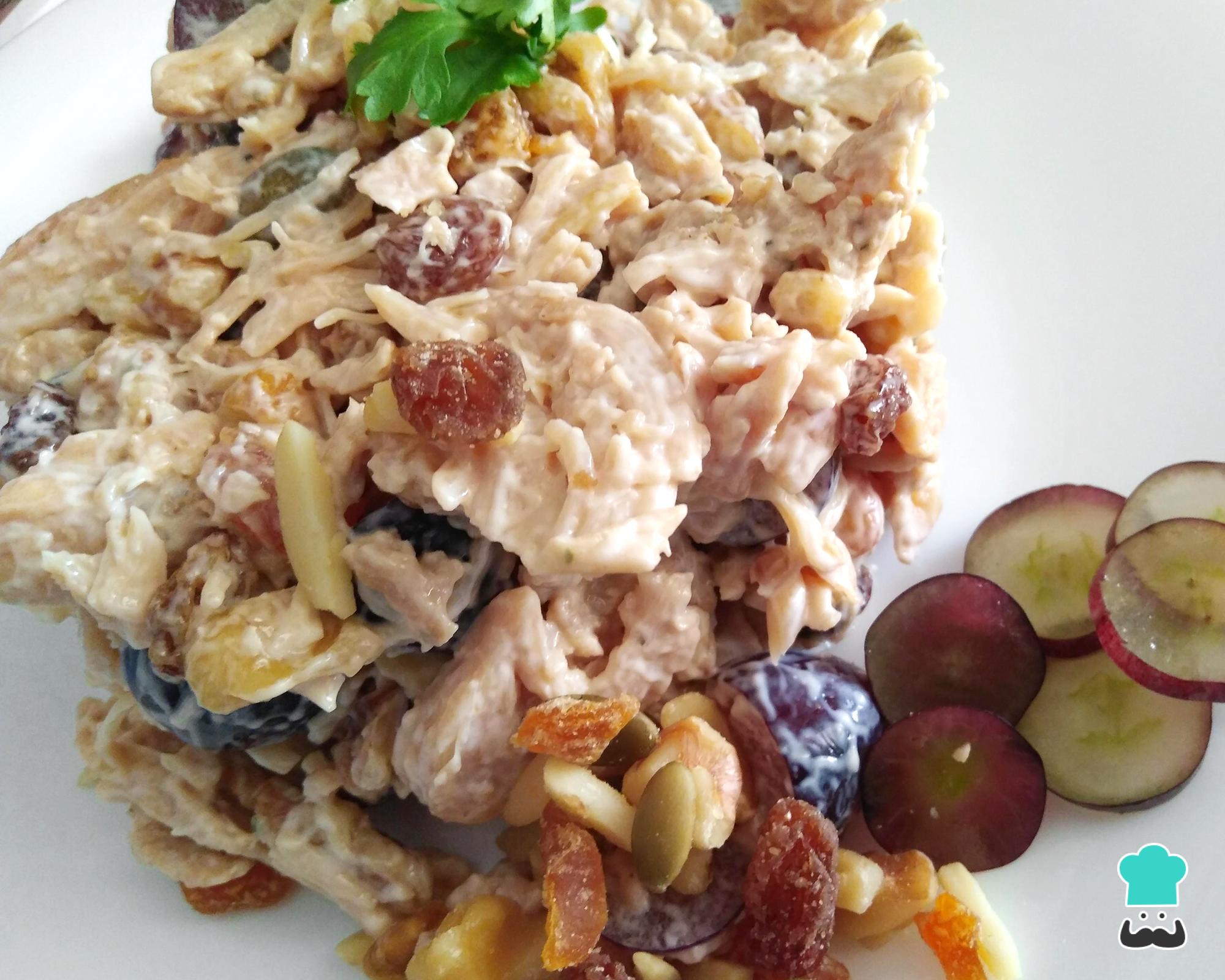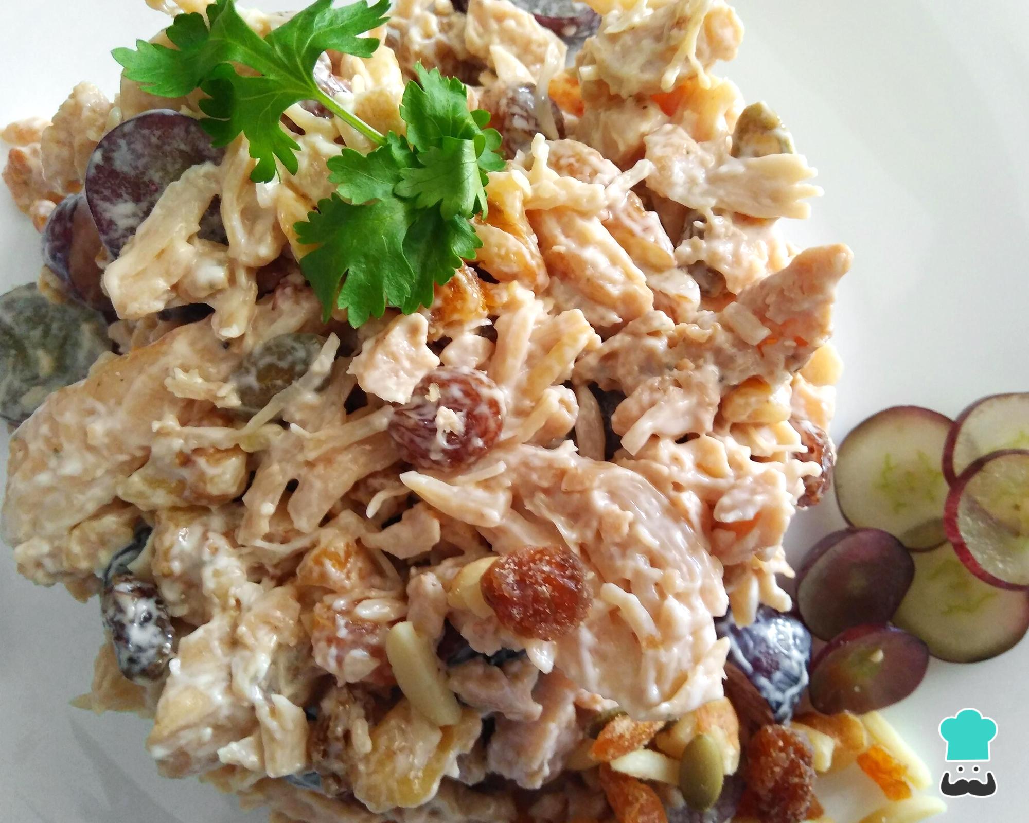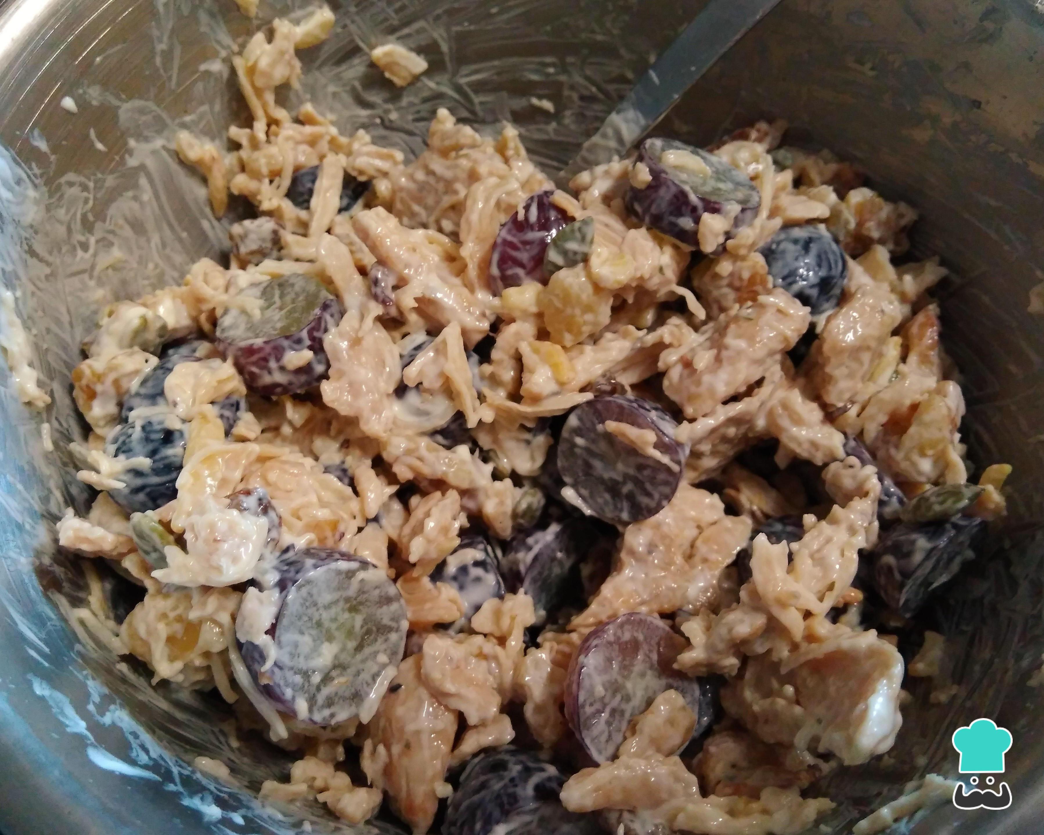 Procurando uma receita de maionese de frango para barquinha, sanduíche, churrasco, macarrão, canapé e mais? Continue aqui no TudoReceitas para conferir esta sugestão saborosa com apenas 5 ingredientes: frango cozido, maionese, nozes, mix de frutos secos para salada e uva.
