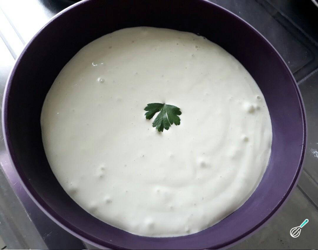 Este é o resultado da maionese de leite temperada. Prove e diga nos comentários o que achou! Ela fica uma delícia como acompanhamento de, por exemplo, espetinho de frango com bacon empanado ou até batata frita.