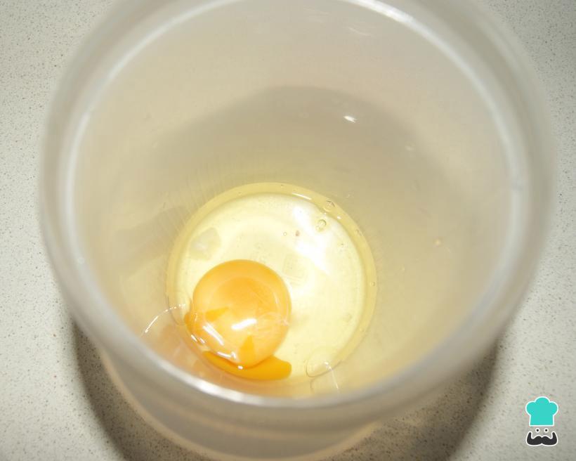 Coloque o ovo (clara e gema) num copo alto, caso você esteja usando um mixer de mão, ou no copo do liquidificador.
