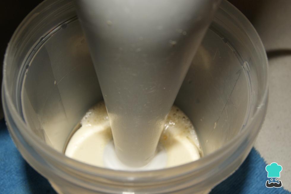 Como bater maionese? Coloque o mixer de mão dentro do copo ou ligue o liquidificador e, à medida que bate, adicione o óleo em um fio bem fino e lentamente.