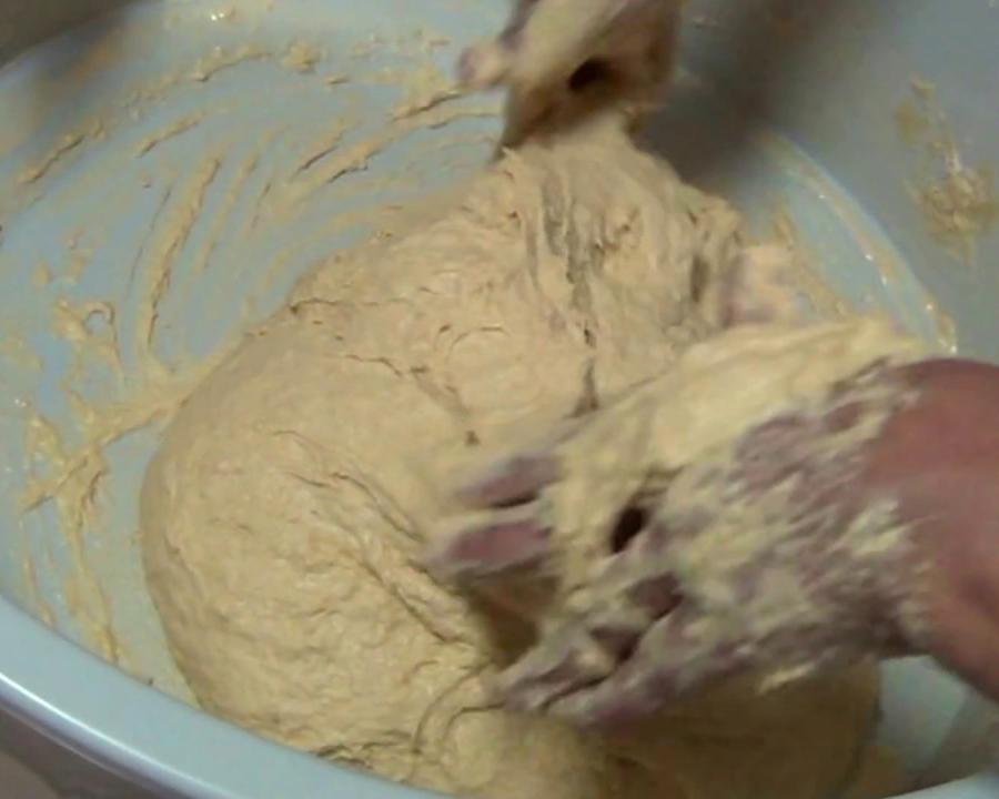 Para fazer esta receita portuguesa comece por peneirar a farinha e o açúcar para um bowl grande. Dissolva o fermento em um pouco de água morna, junte no meio da farinha e misture.