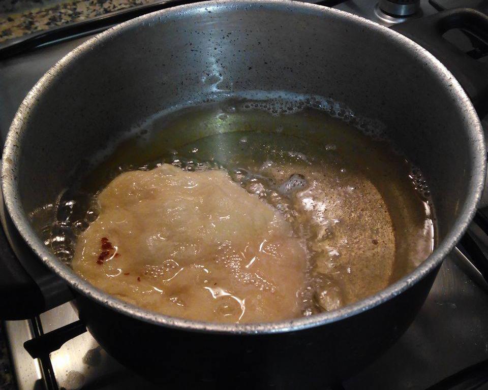 No fim desse tempo esquente o óleo. Pegue pedaços de massa com as mãos e modele em um disco achatado. Coloque fritando quando o óleo estiver quente e vire para que as malassadas fiquem douradas de ambos os lados. Retire para um papel absorvente para escorrer o excesso de óleo.