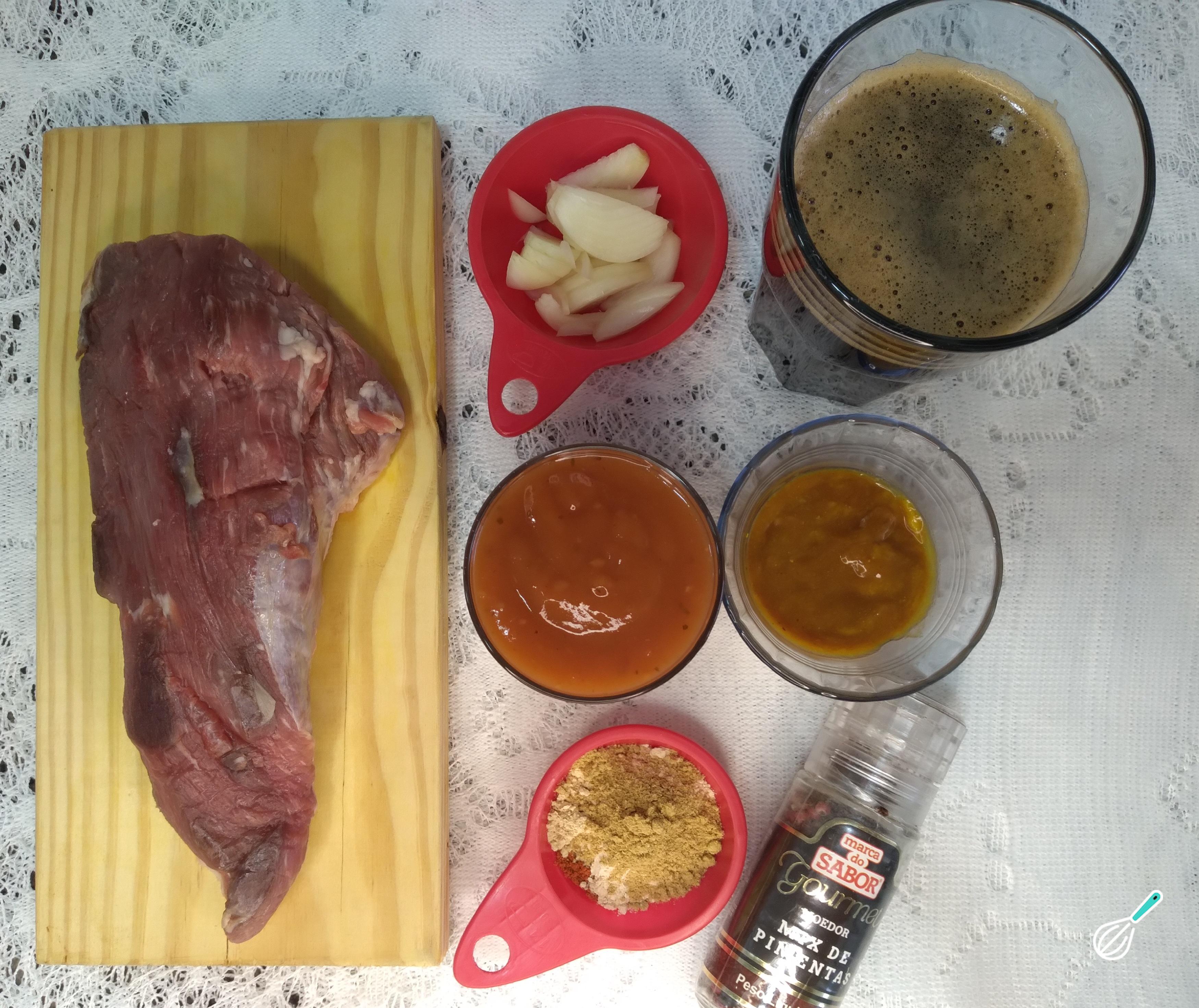 Comece separando os ingredientes para o preparo da maminha na cerveja preta.