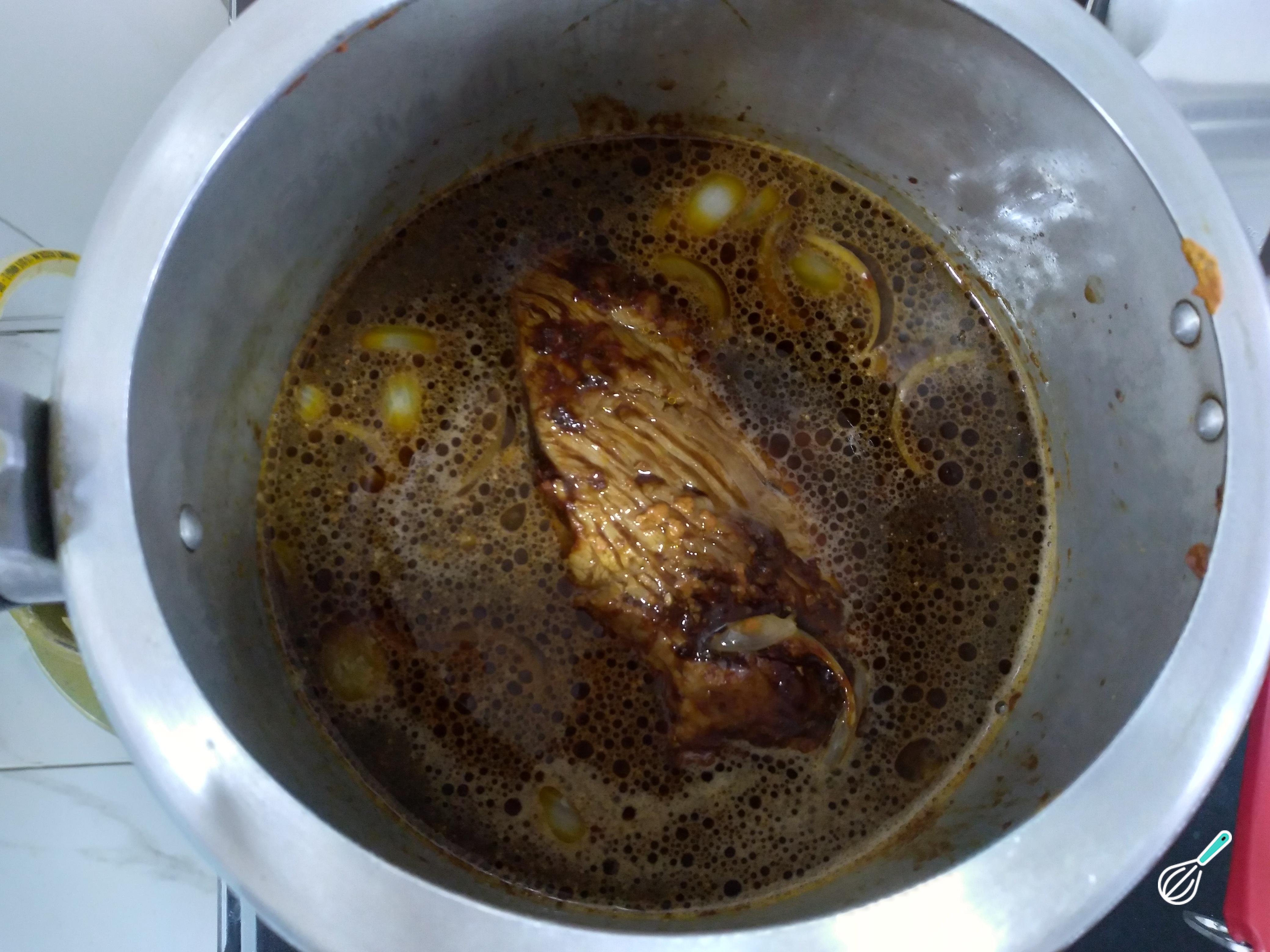 Depois das 2 horas, retire a carne. Em uma panela de pressão, coloque o óleo.