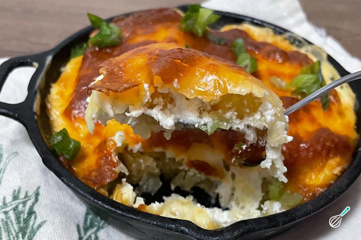 Deixe no forno até gratinar. Finalize com cebolinha na hora de servir. Consuma preferencialmente quente, bom apetite! Nos conte o que achou dessa receita nos comentários e poste suas fotos!