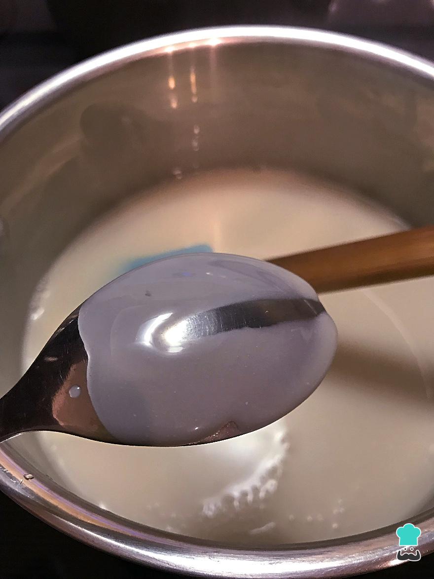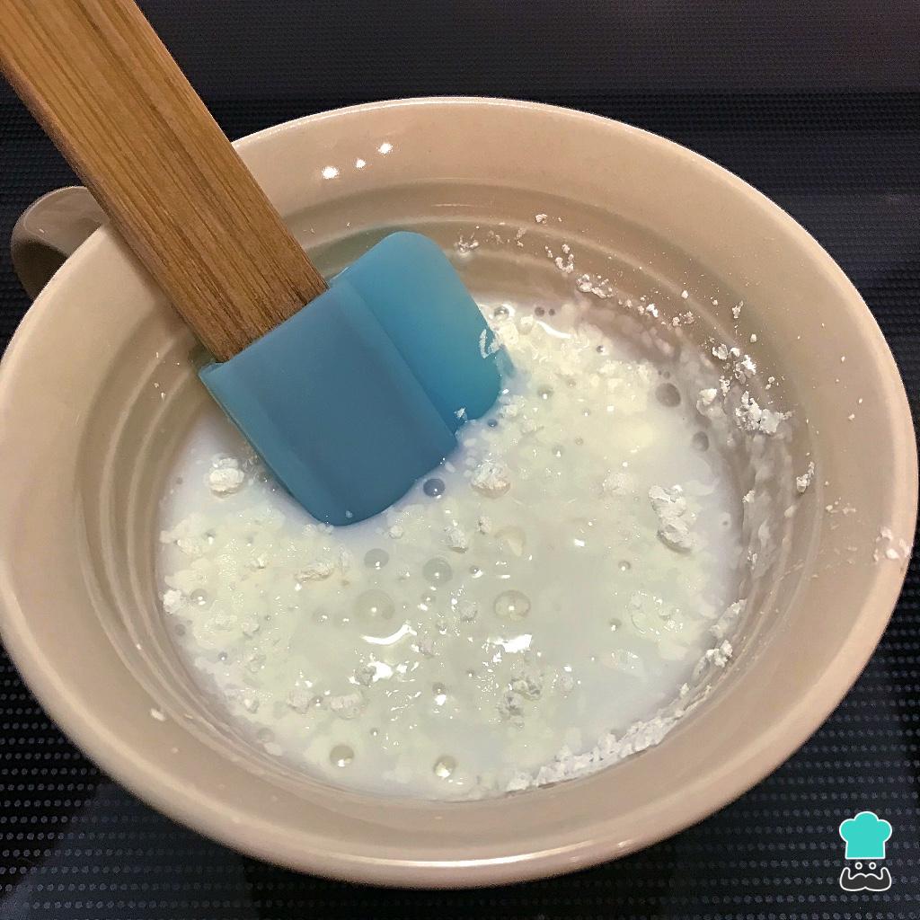 Para preparar o manjar de coco vegano misture o amido em meia xícara do leite de coco, até desfazer todos os gruminhos.