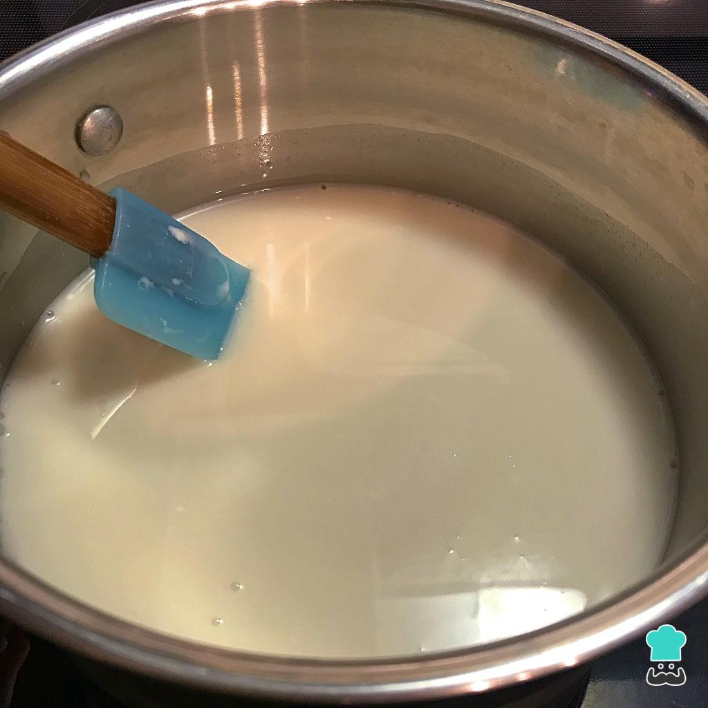 Numa panela misture o restante do leite com a mistura de amido de milho e o resto do xarope de bordo. Deixe em fogo médio e mexa sempre, até engrossar.