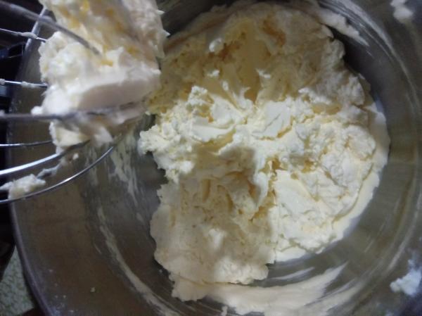 Eu bati a nata conforme as instruções por cinco minutos na velocidade baixa e depois 10 minutos na velocidade alta. Não deu soro. Formou uma pasta cremosa.