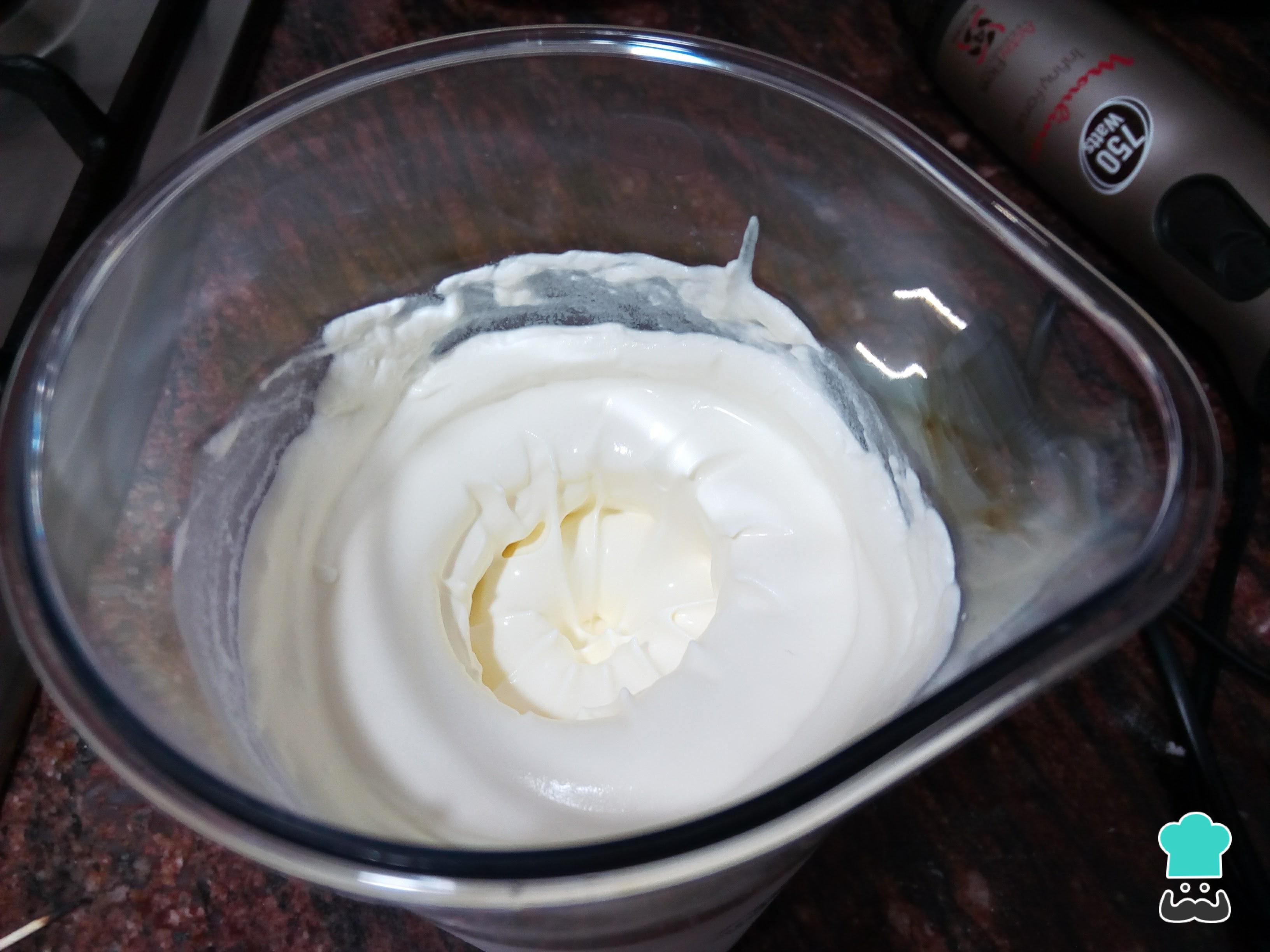 Dica: A nata ou o creme de leite deverão estar bem frios antes de bater. Não use nata light porque o resultado não será o mesmo.