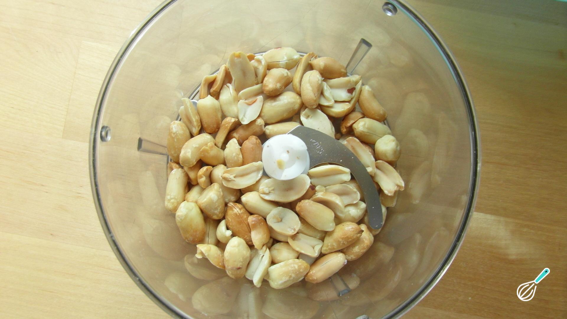 Bata em velocidade alta. Numa primeira fase o amendoim ficará moído depois, pouco a pouco, libertará o óleo que contém naturalmente.