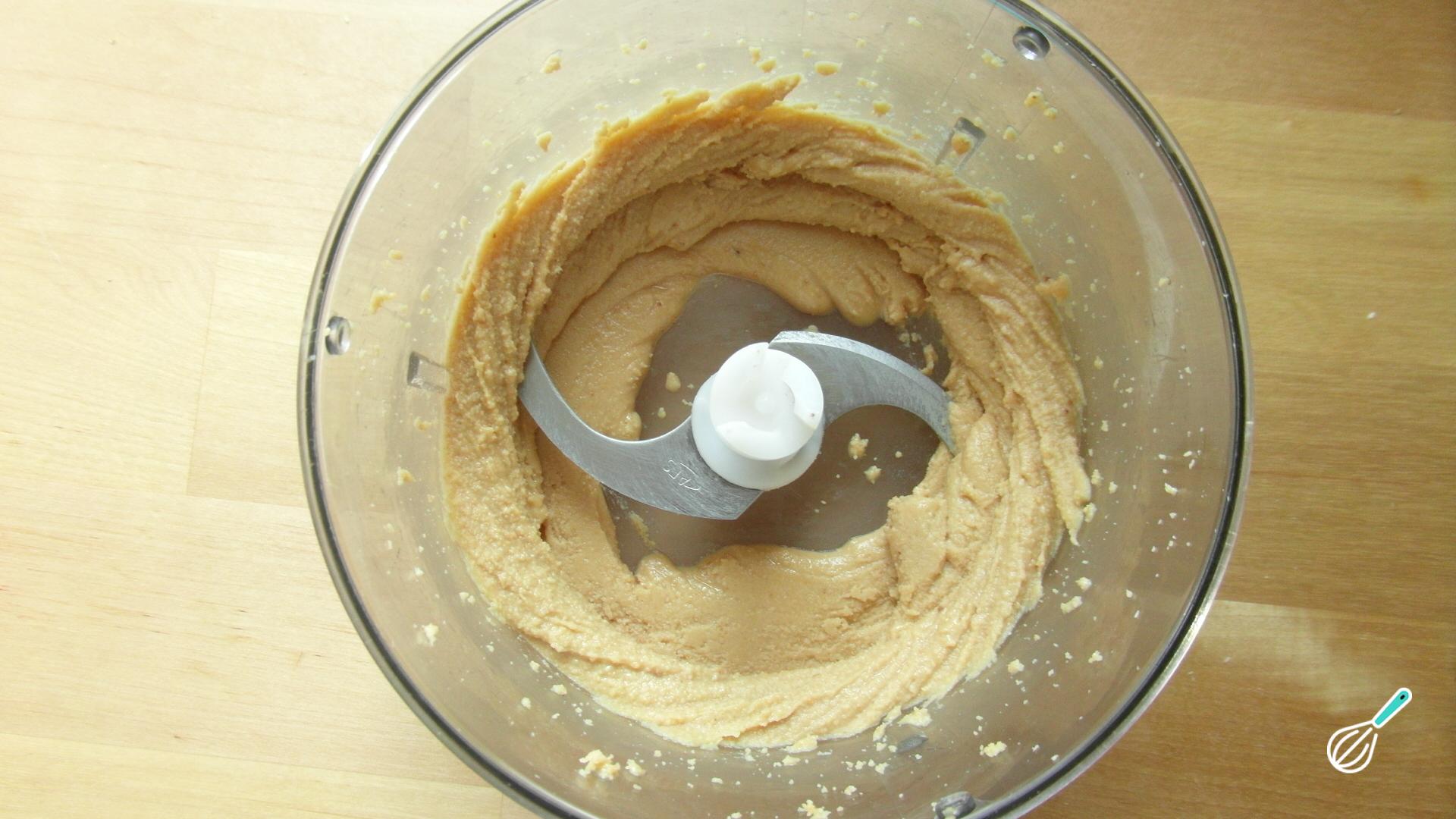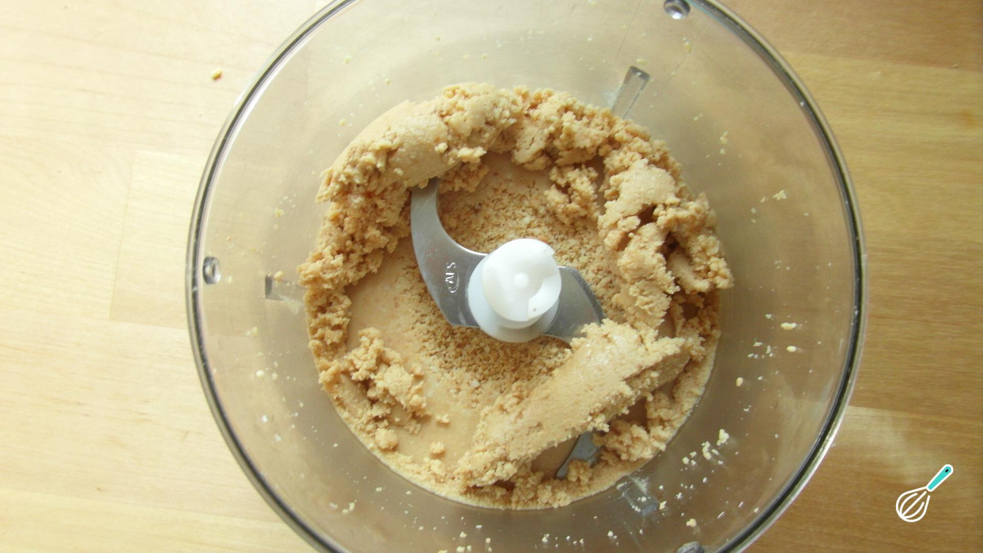 Alguns segundos depois será possível observar que o amendoim está se transformando numa pasta, que irá dar origem à manteiga de amendoim que pretendemos.