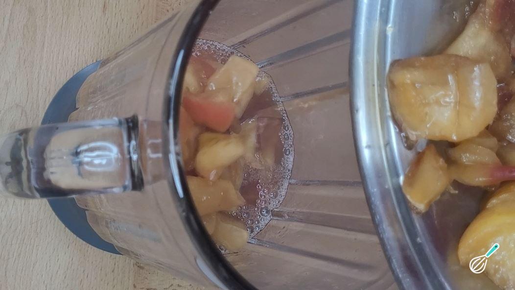Quando as maçãs estiverem bem macias, transfira para um liquidificador com o líquido que ainda tiver na panela e bata até ficar bem liso, sem grumos.