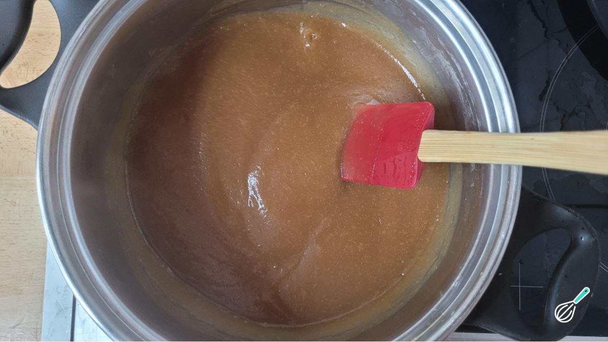 O ponto correto é quando ela começa a desgrudar do fundo e das laterais da panela, quase como se fosse um molho branco. Para testar, você pode passar o dedo, com cuidado, na espátula. Ela deve formar um caminho que não junta novamente.