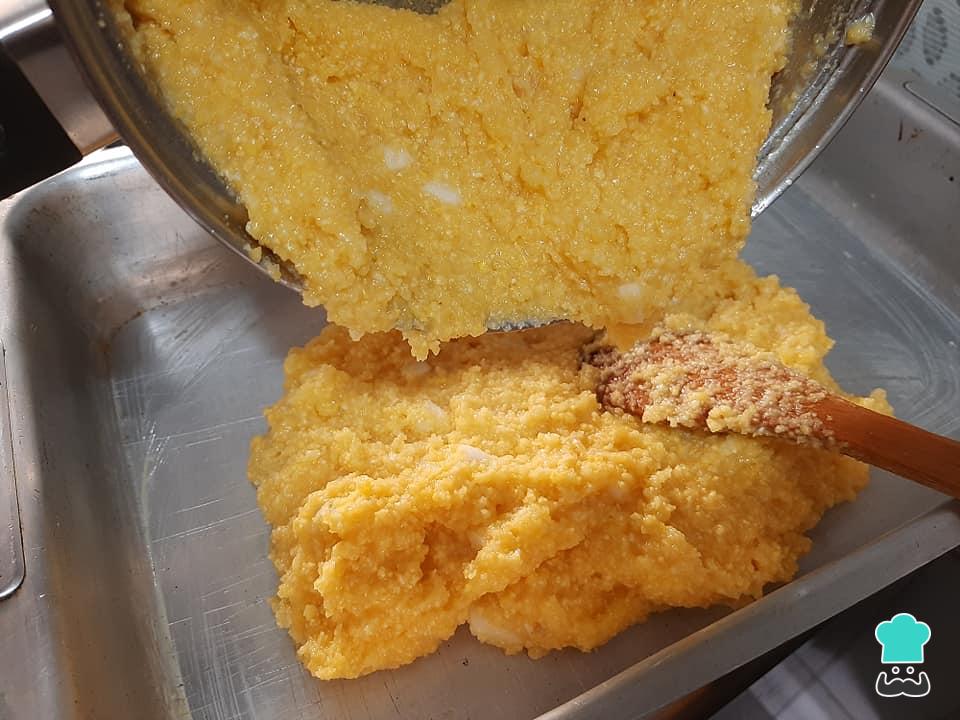 Depois do passo anterior transfira a massa de manuê de milho para uma assadeira média, untada com manteiga.