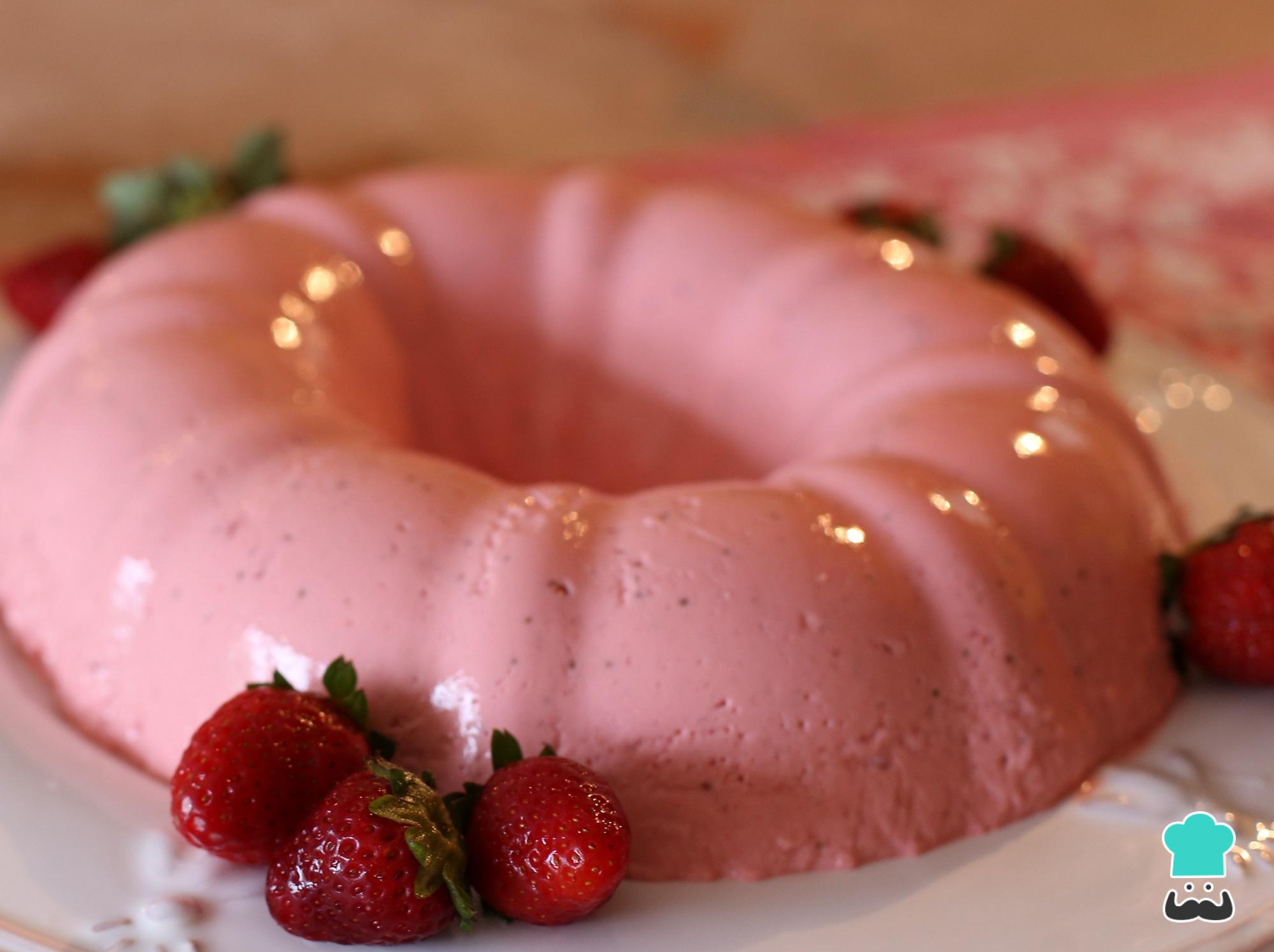 Depois de gelar, seu pudim maria mole de morango está pronto a comer! Se desejar, cubra o pudim com coco ralado a gosto ou decore com morangos frescos.