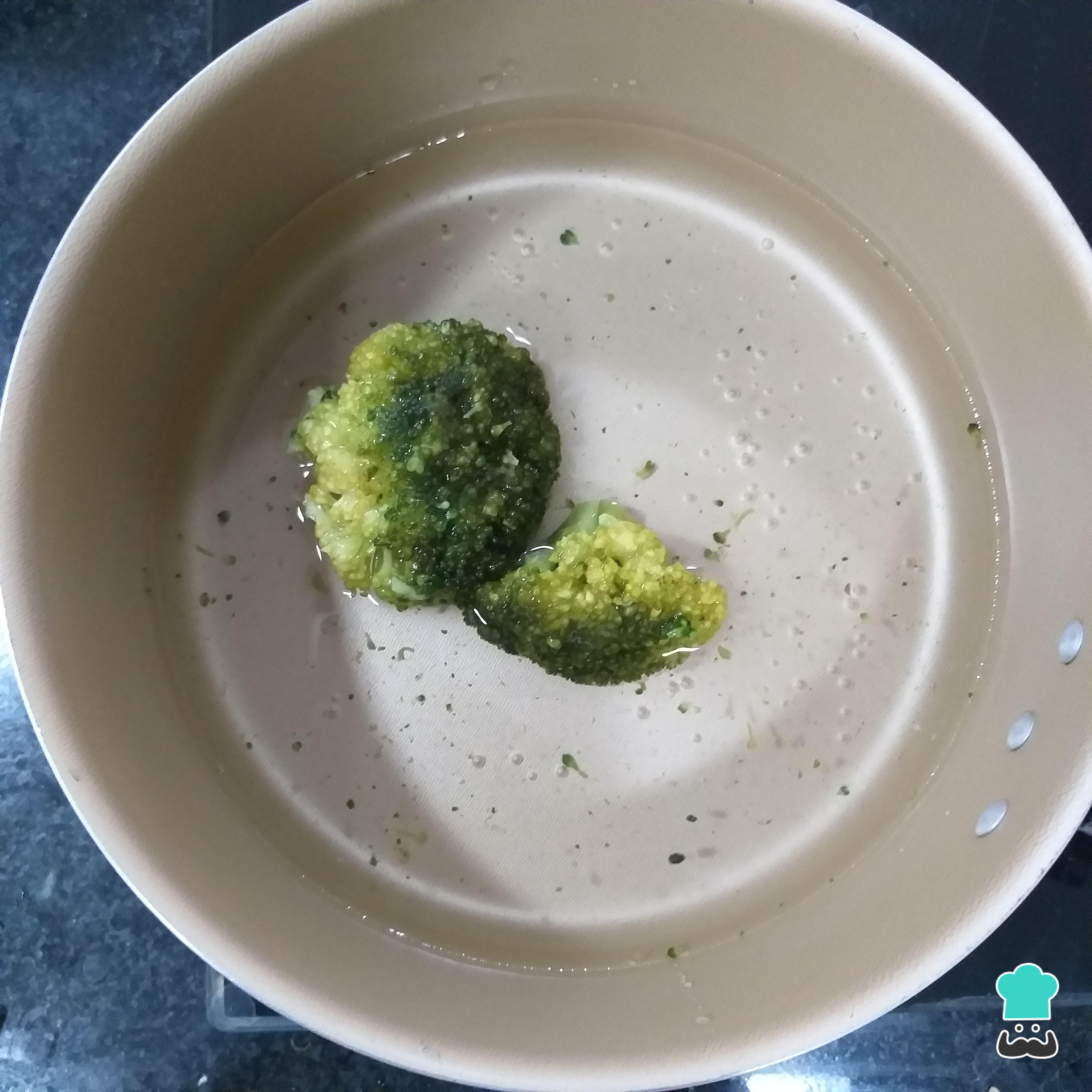 Em seguida coloque os floretes de brócolis por 3 minutos em uma panela com água fervente.
