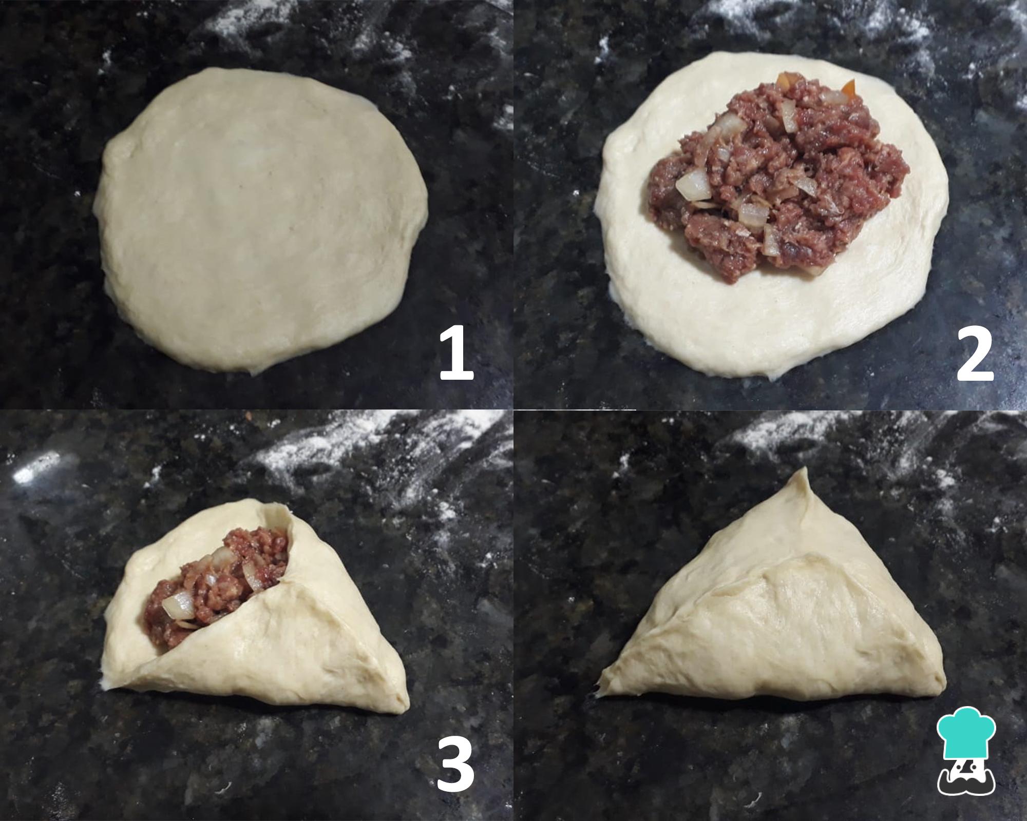 Prepare seus salgadinhos com essa massa base. No caso de querer preparar esfirras fechadas, basta seguir esses três passos: