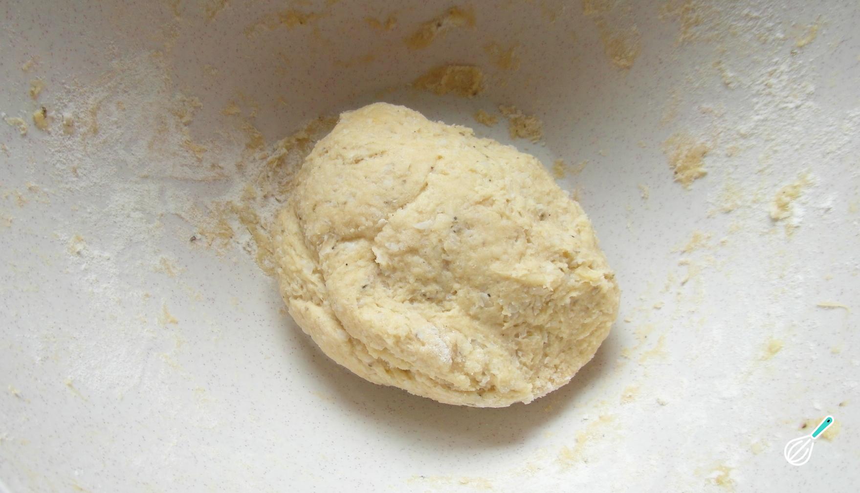 O ideal é que a massa de pizza de couve flor fique com uma consistência semelhante à da imagem abaixo. Se ela estiver muito grudenta, poderá ser necessário acrescentar algum tipo de farinha sem glúten (por exemplo: farinha de amêndoas, farinha de arroz, etc).