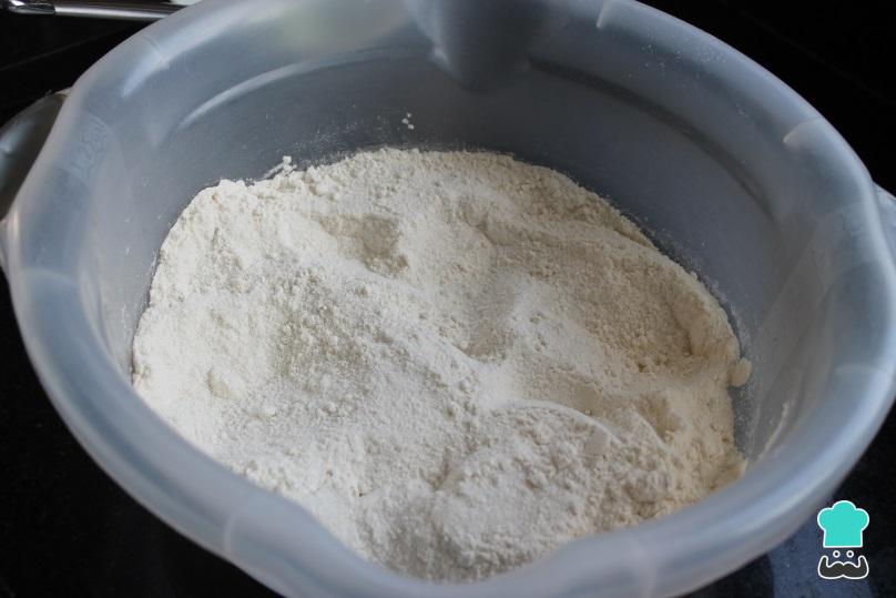 Para preparar essa massa de empada sem glúten comece por misturar todos os ingredientes secos em uma tigela.