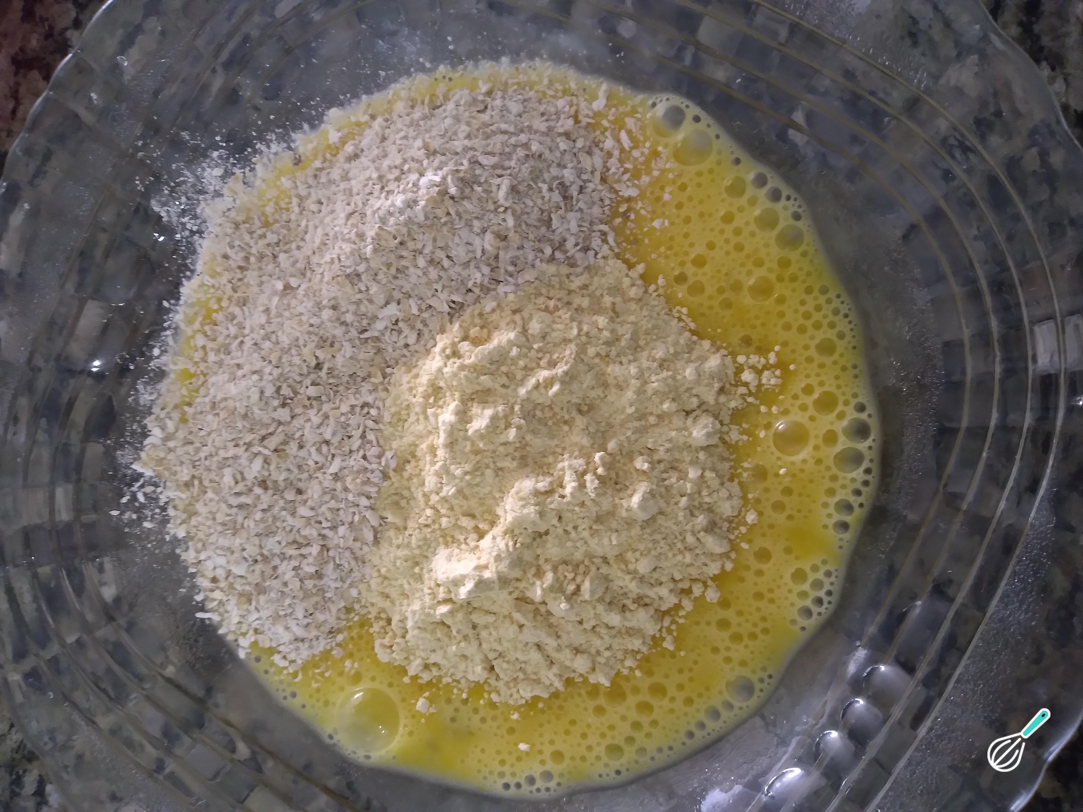 Em seguida colocamos as duas farinhas e misturamos tudo.