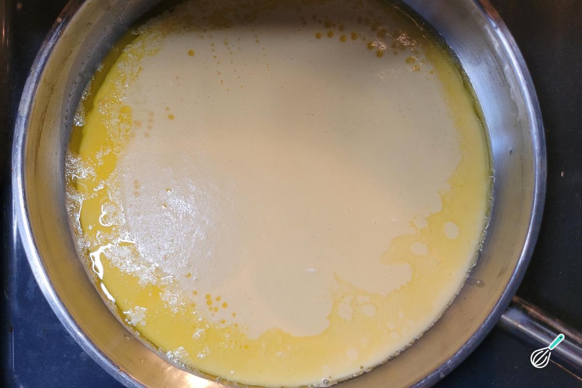 Adicione a manteiga derretida e o leite.