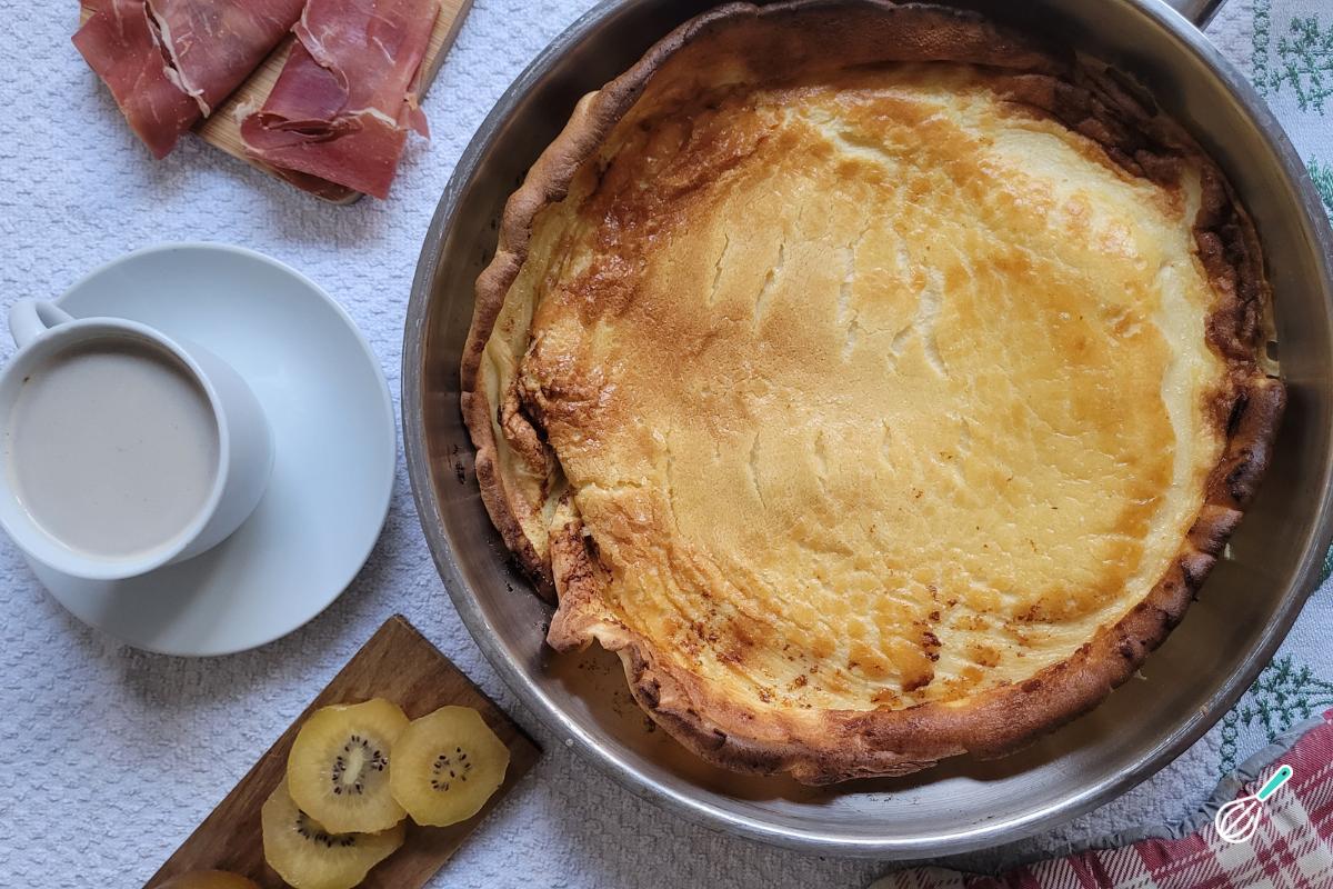 Se você ama panqueca, essa é a mais fácil que você vai fazer. Inspirada na dutch baby, uma panqueca muito comum na gringa, a massa é muito simples, com poucos ingredientes e feita no liquidificador e ao invés de ser feita na frigideira, é assada no forno, normalmente em uma frigideira. A massa infla no forno e fica com uma textura macia e aveludada, criando uma base perfeita para colocar os toppings que quiser.