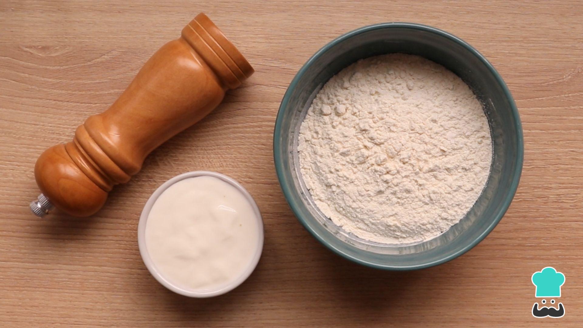 Comece separando os ingredientes para a sua massa de pastel com creme de leite.