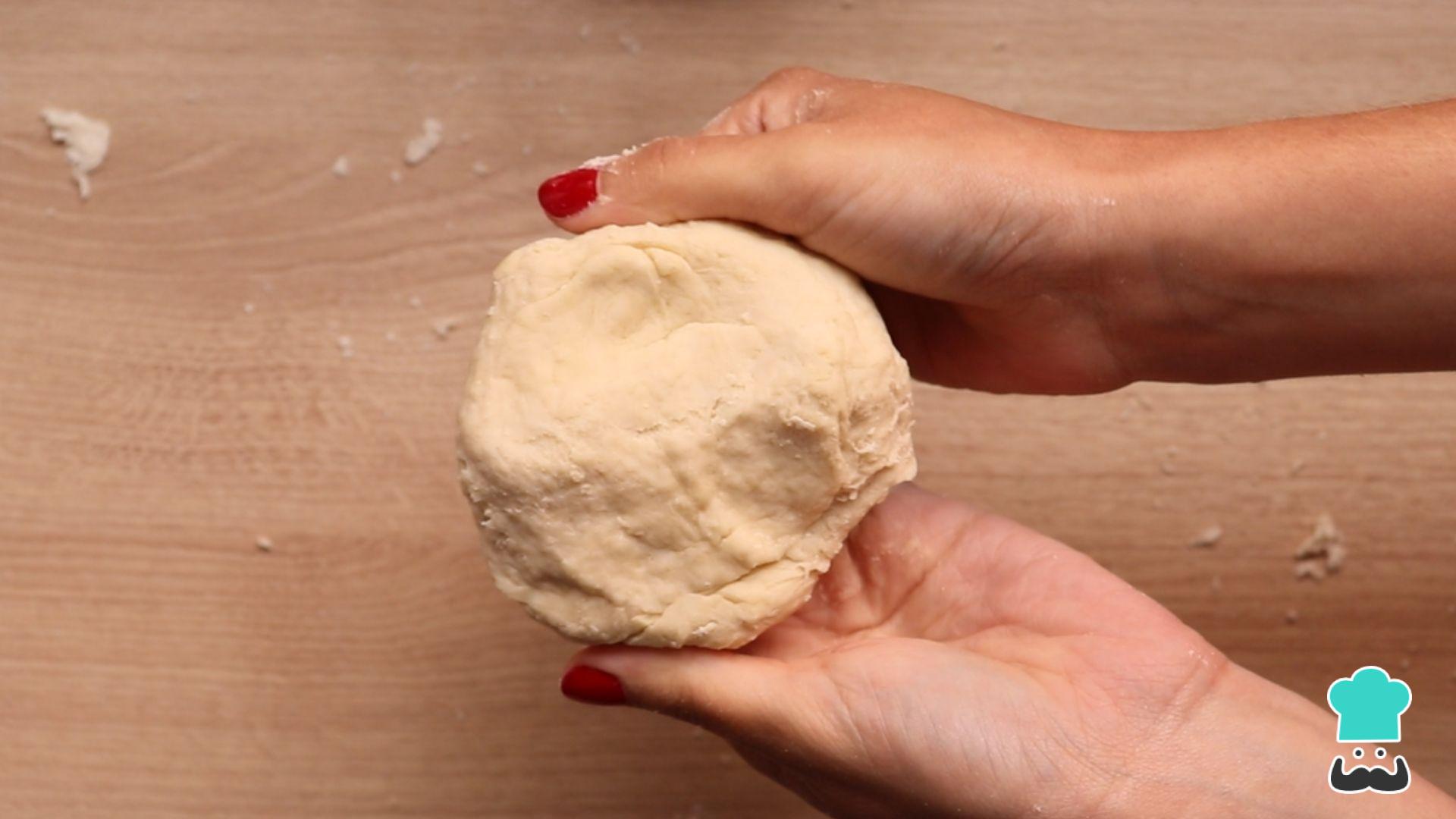 Continue adicionando a farinha aos poucos até formar uma massa homogênea e que não grude na mão.