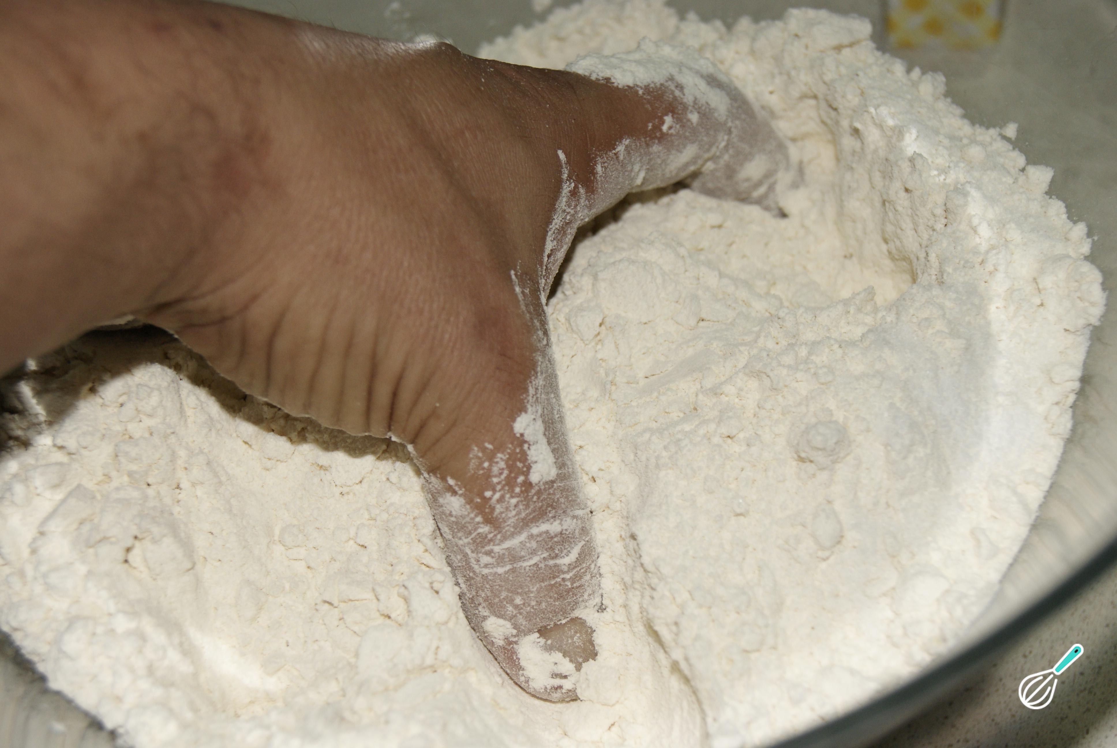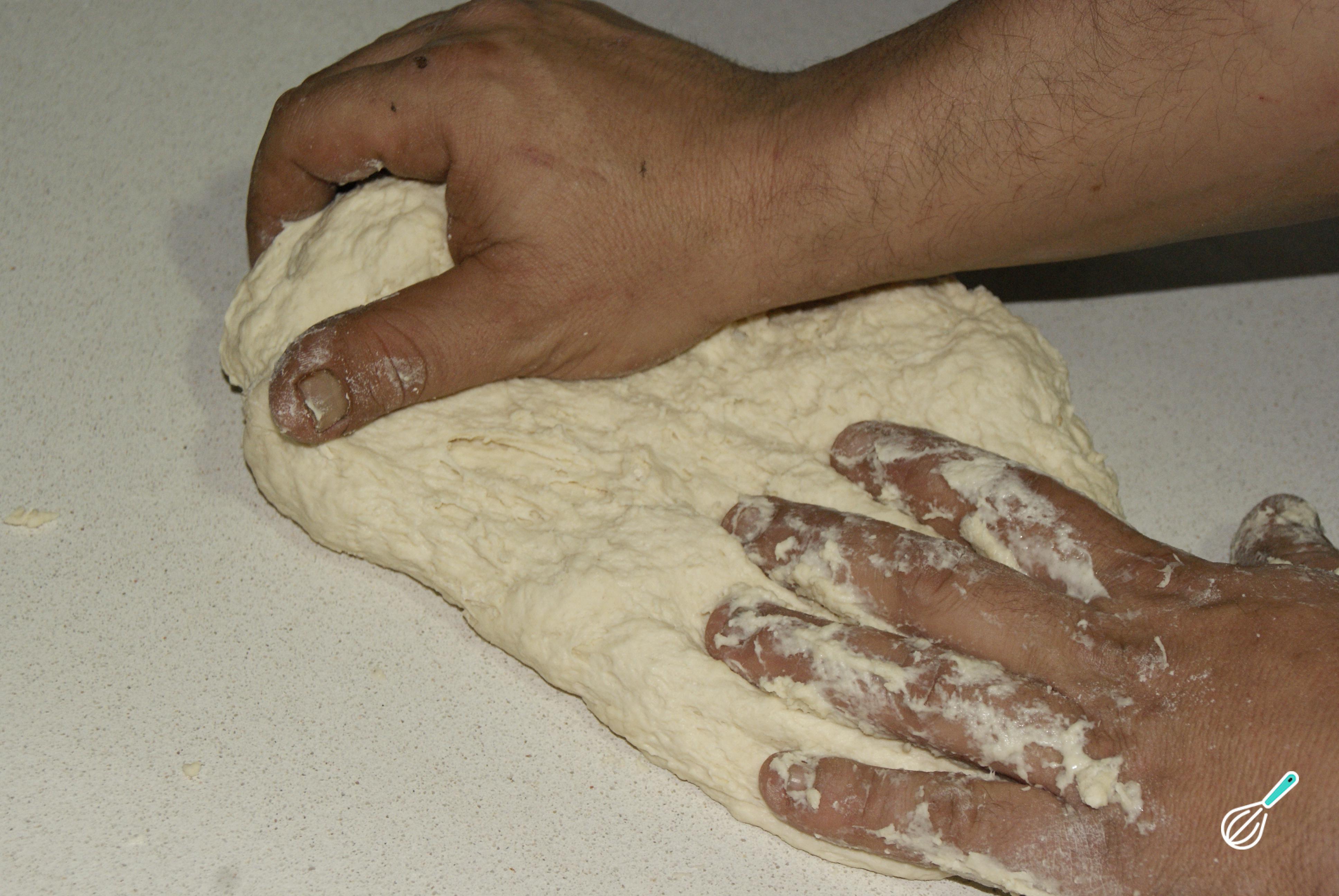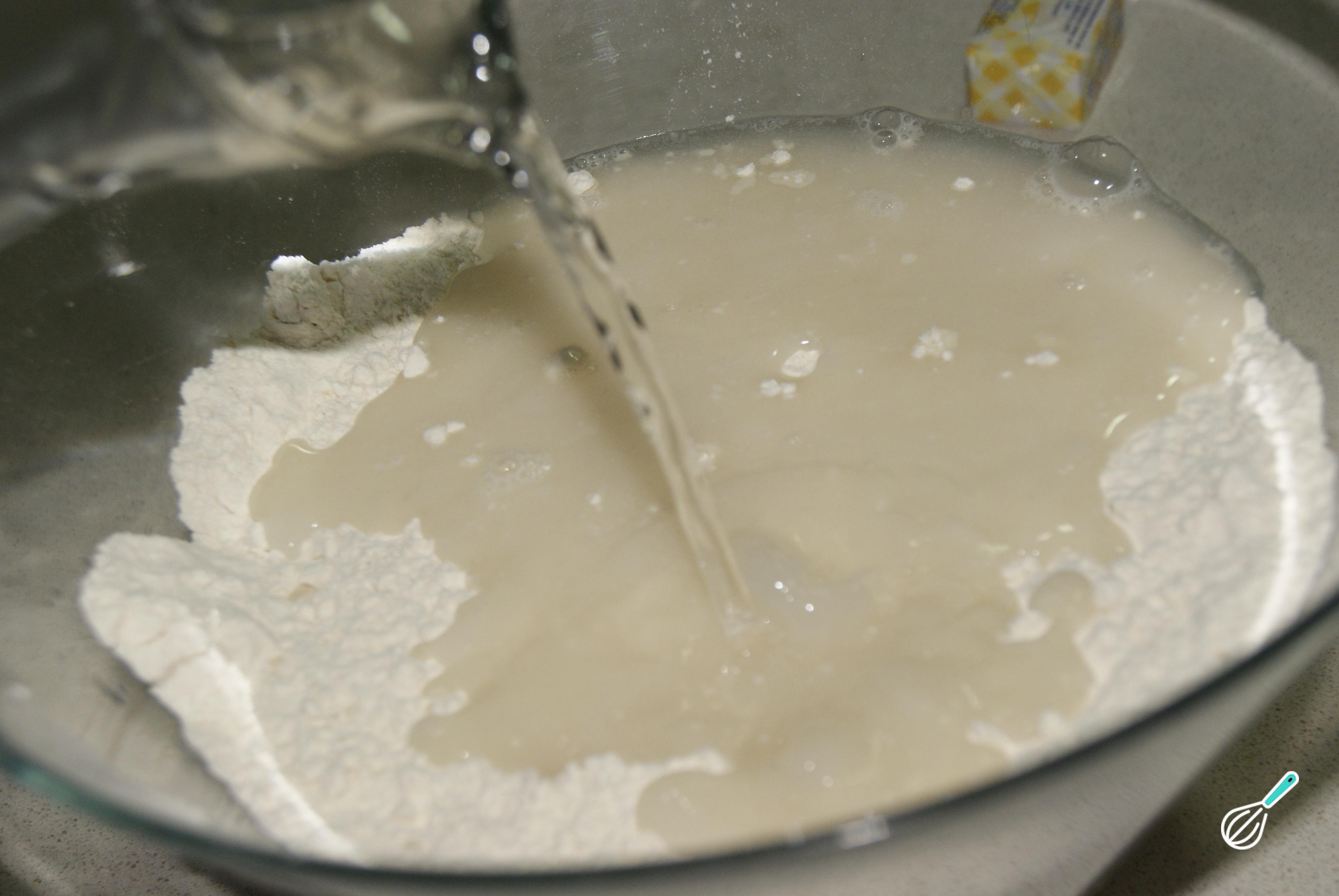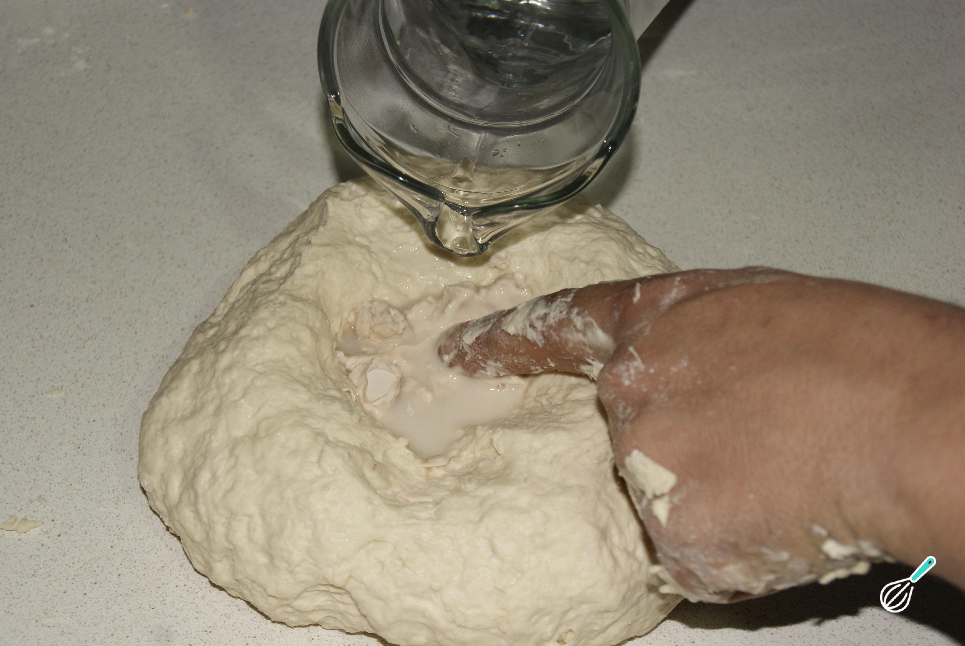 Dica: Se você adicionar demasiada água, lembre-se que você pode equilibrar a massa, adicionando mais farinha.