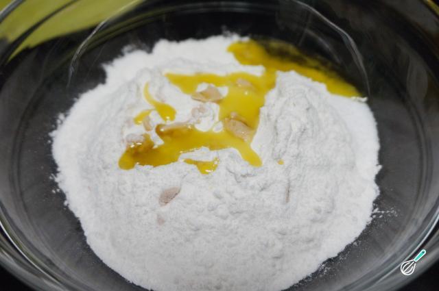 Dica: Se estiver usando fermento biológico seco dissolva-o na água morna e adicione no passo seguinte. Isso é importante para hidratar e ativar o fermento.