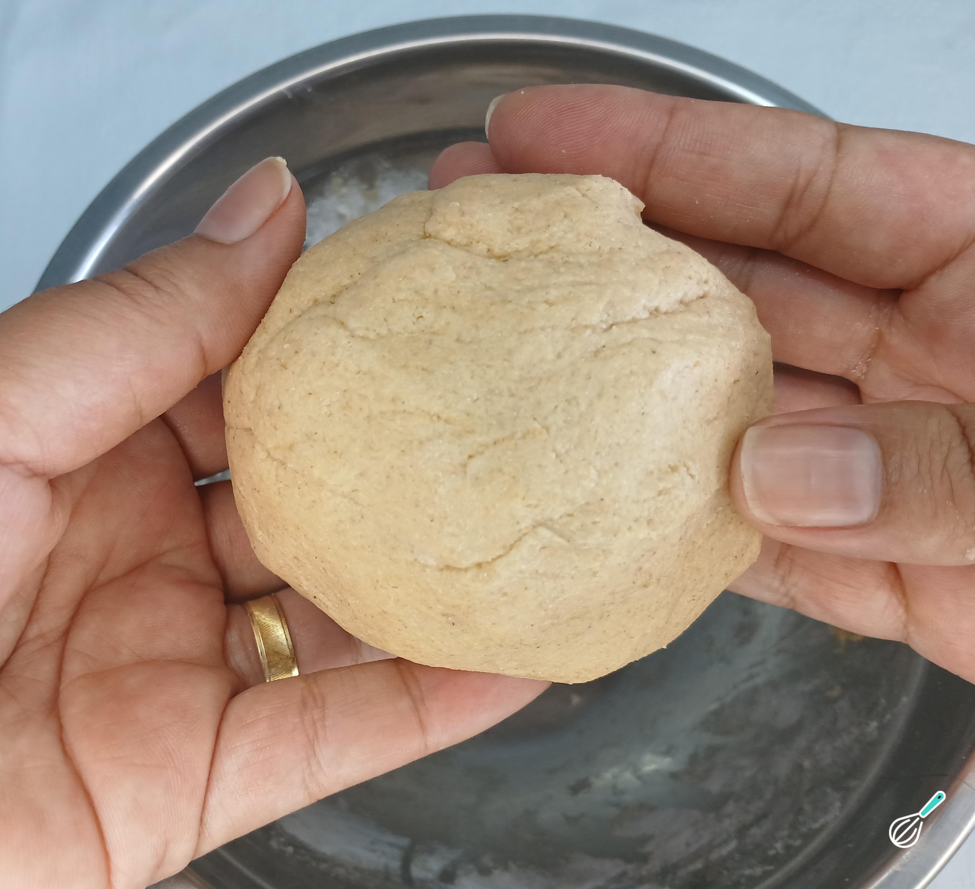 A massa precisa soltar das mãos. Esse é o ponto exato. Faça uma bolinha e deixe descansar por aproximadamente 5 minutos. Cubra com um pano de prato ou um plástico filme.
