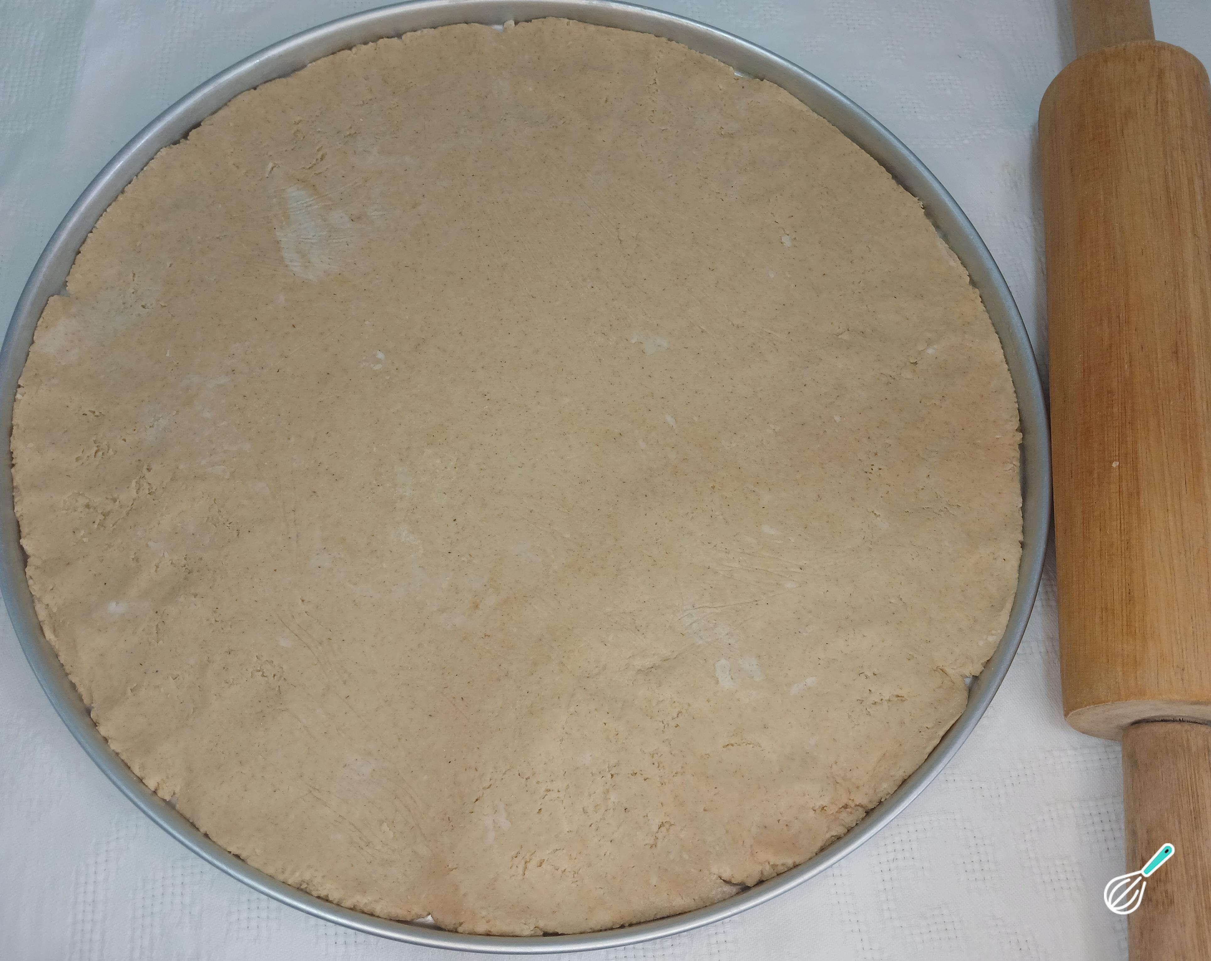 Dica: Na falta do rolo, você pode usar uma garrafa lisa ou abrir a massa com as mãos sobre a forma de pizza.