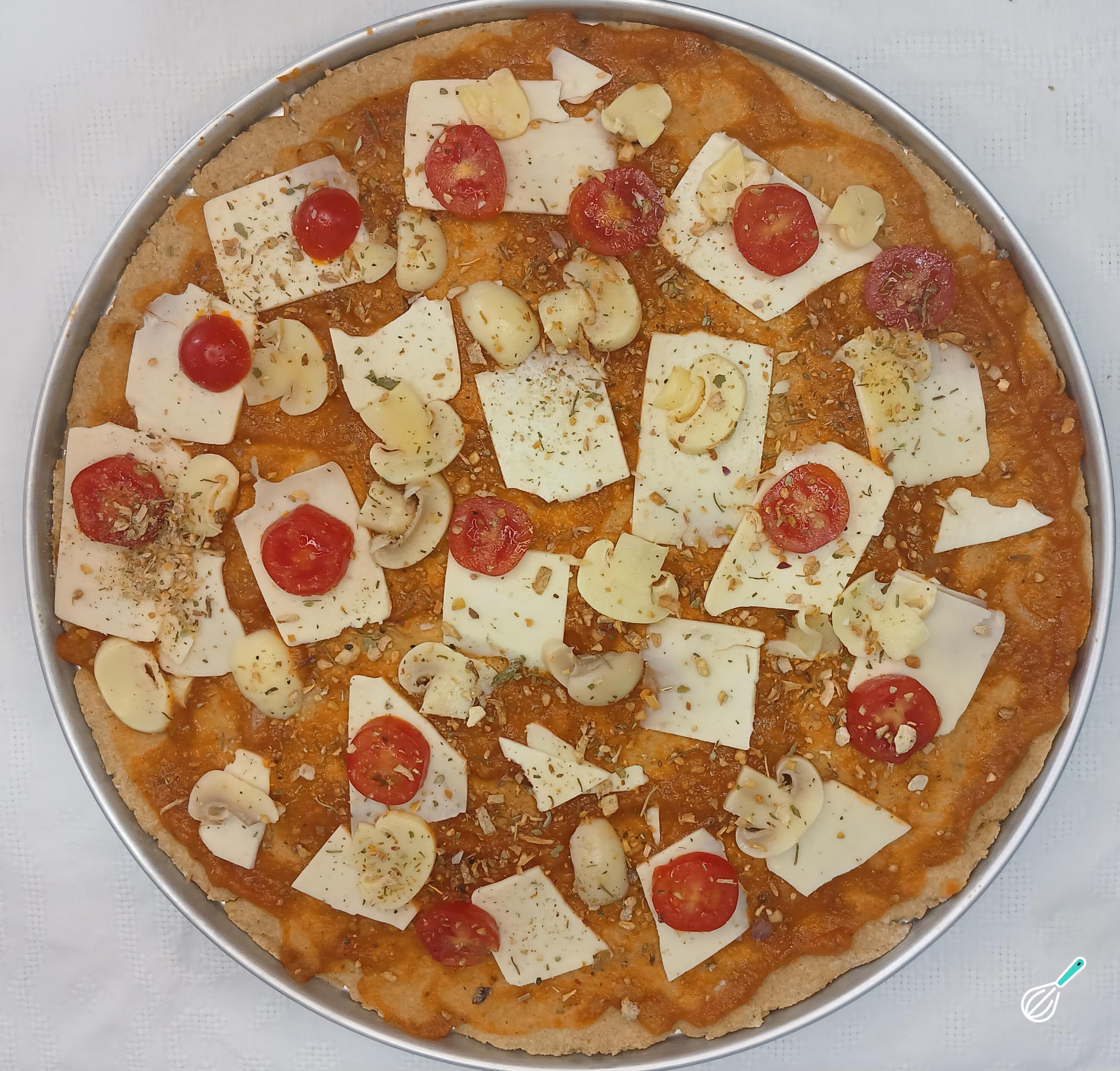 Dica: É importante pré-assar a massa da pizza. Esse processo vai garantir o sucesso da receita