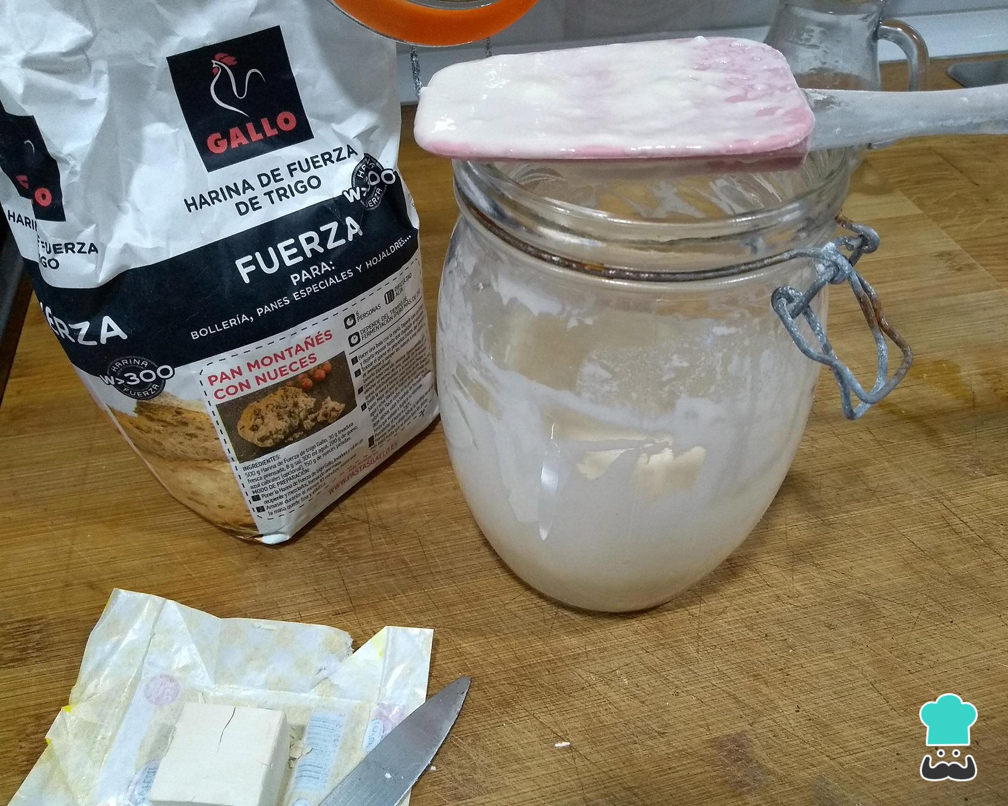 Adicione a farinha e misture. Reserve esta mistura em um pote de vidro, tampado com papel toalha ou pano prato, na bancada da cozinha ou em um local calmo por 10 horas, no mínimo.