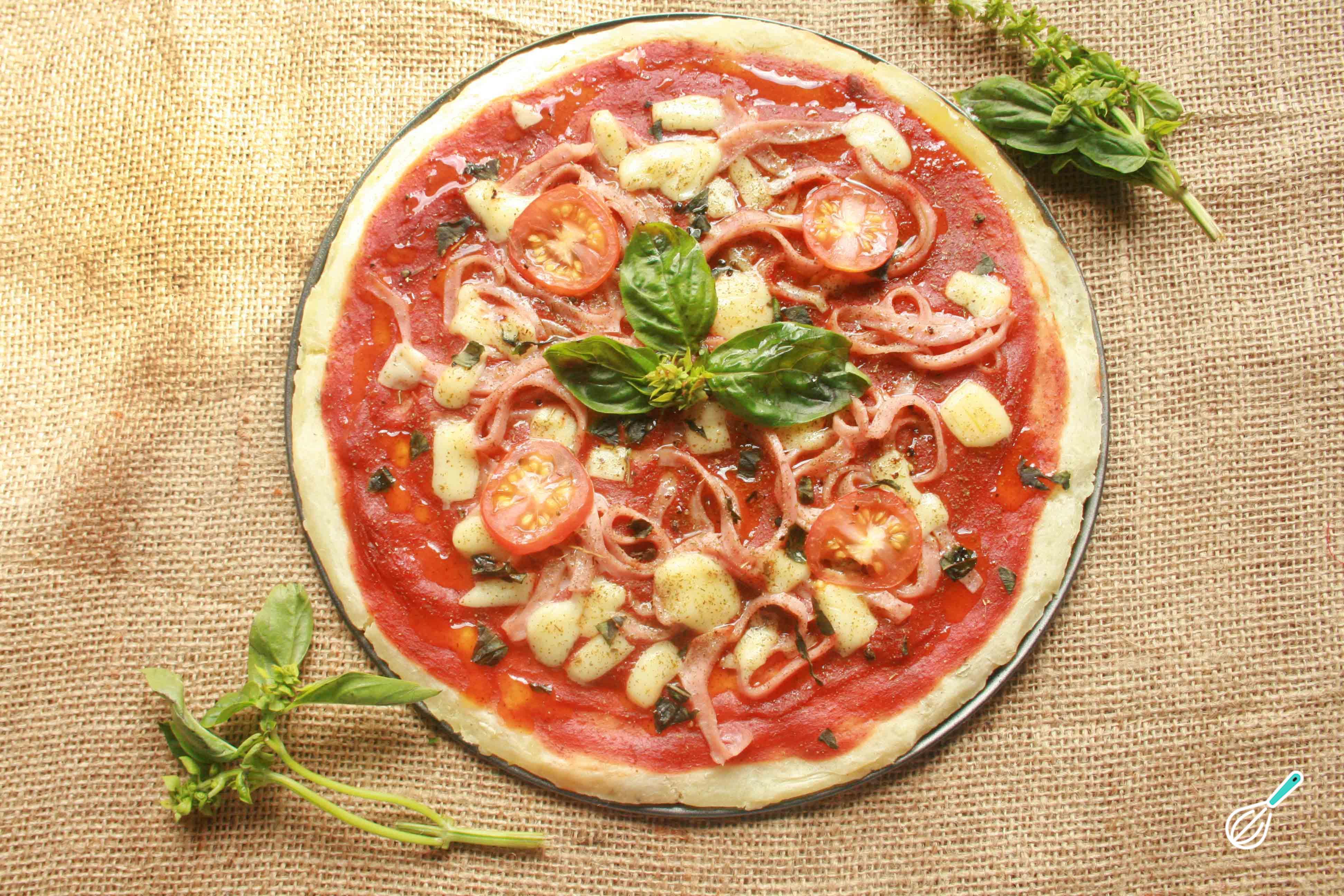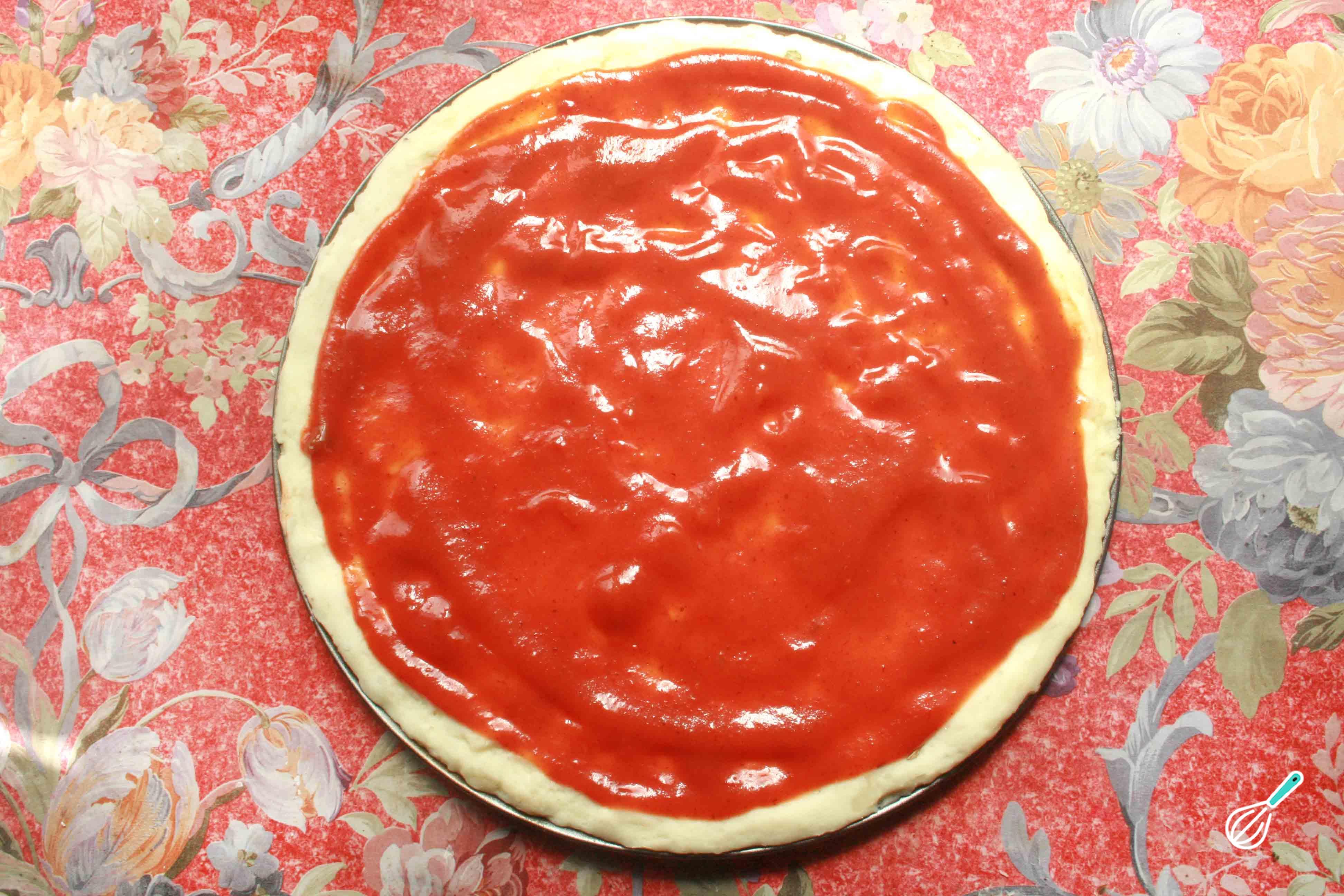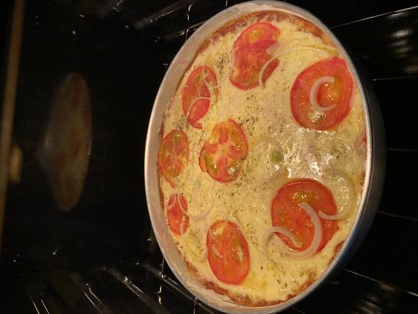 Cubra a massa com molho de tomate e leve ao forno a 170-200ºC durante 5 minutos ou um pouco mais, se preferir a massa mais sequinha.