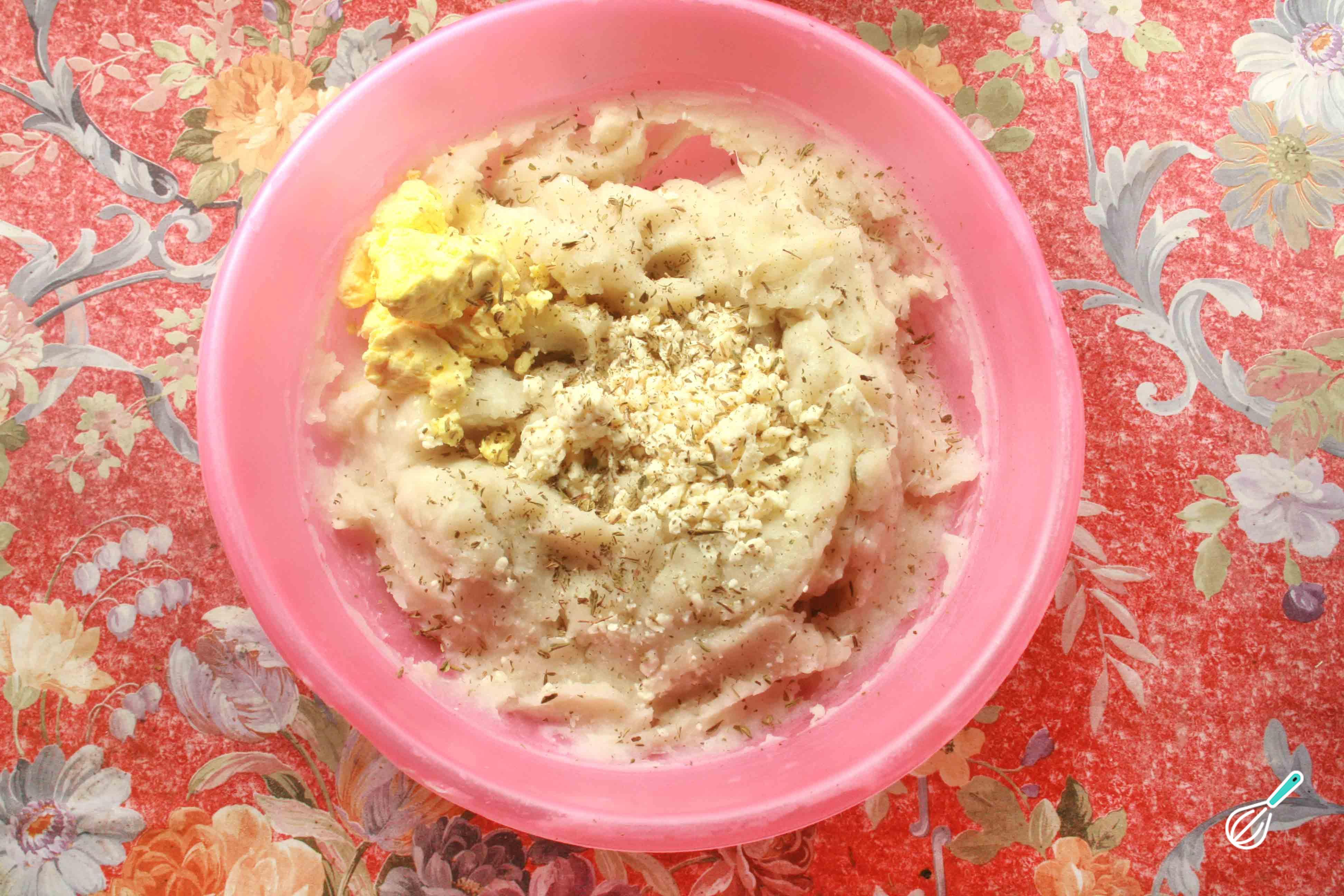 Em seguida acrescente a manteiga, o queijo, os oréganos, sal e pimenta a gosto.