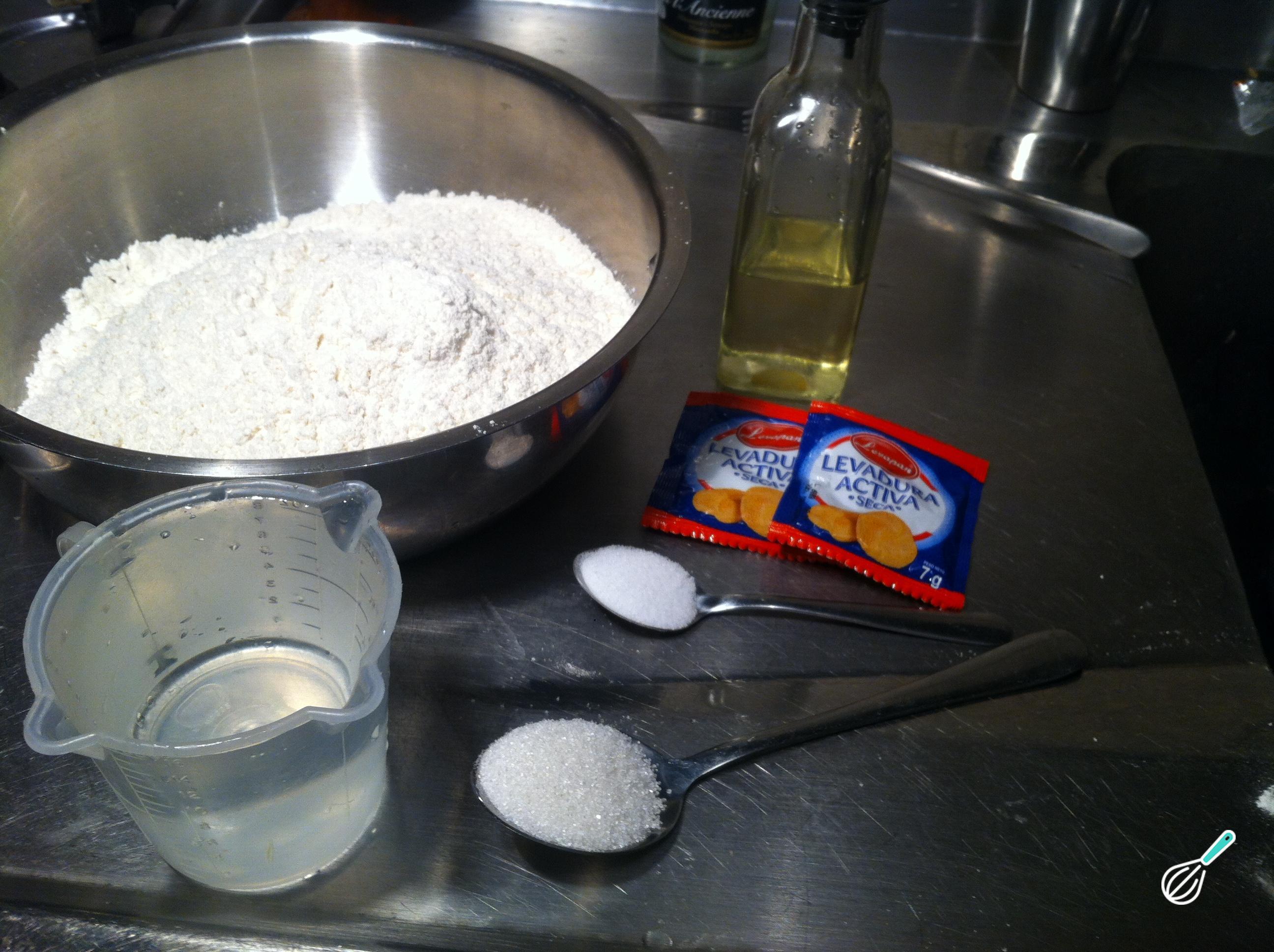 Prepare todos os ingredientes para fazer a massa de pizza fácil, caseira e tradicional.