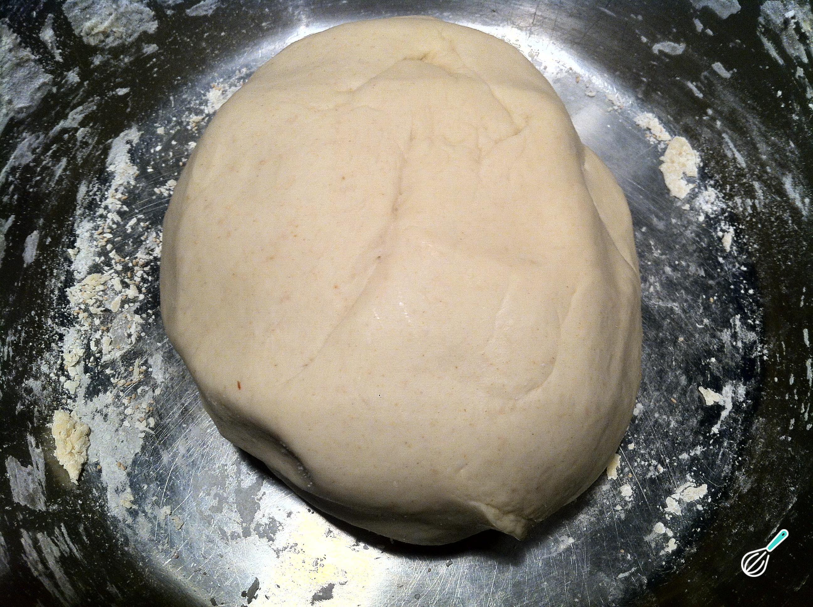 Após amassar por 7 a 10 minutos, terá uma massa macia e homogênea. Deixe descansar por 30 minutos até dobrar o seu volume.